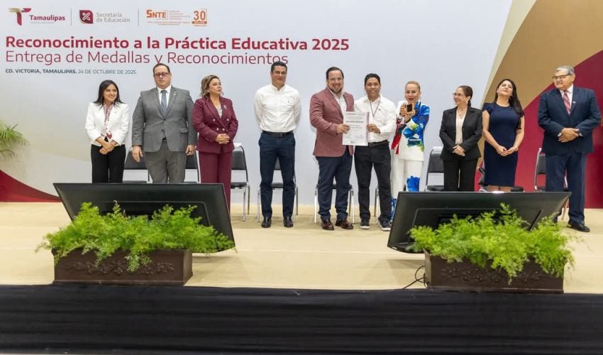 Las maestras y los maestros tamaulipecos son una muestra del compromiso y privilegio de ser docentes por convicción y por vocación, aseguró Miguel Ángel Valdez García, secretario de Educación de Tamaulipas, al entregar el Reconocimiento a la Práctica Educativa 2025.