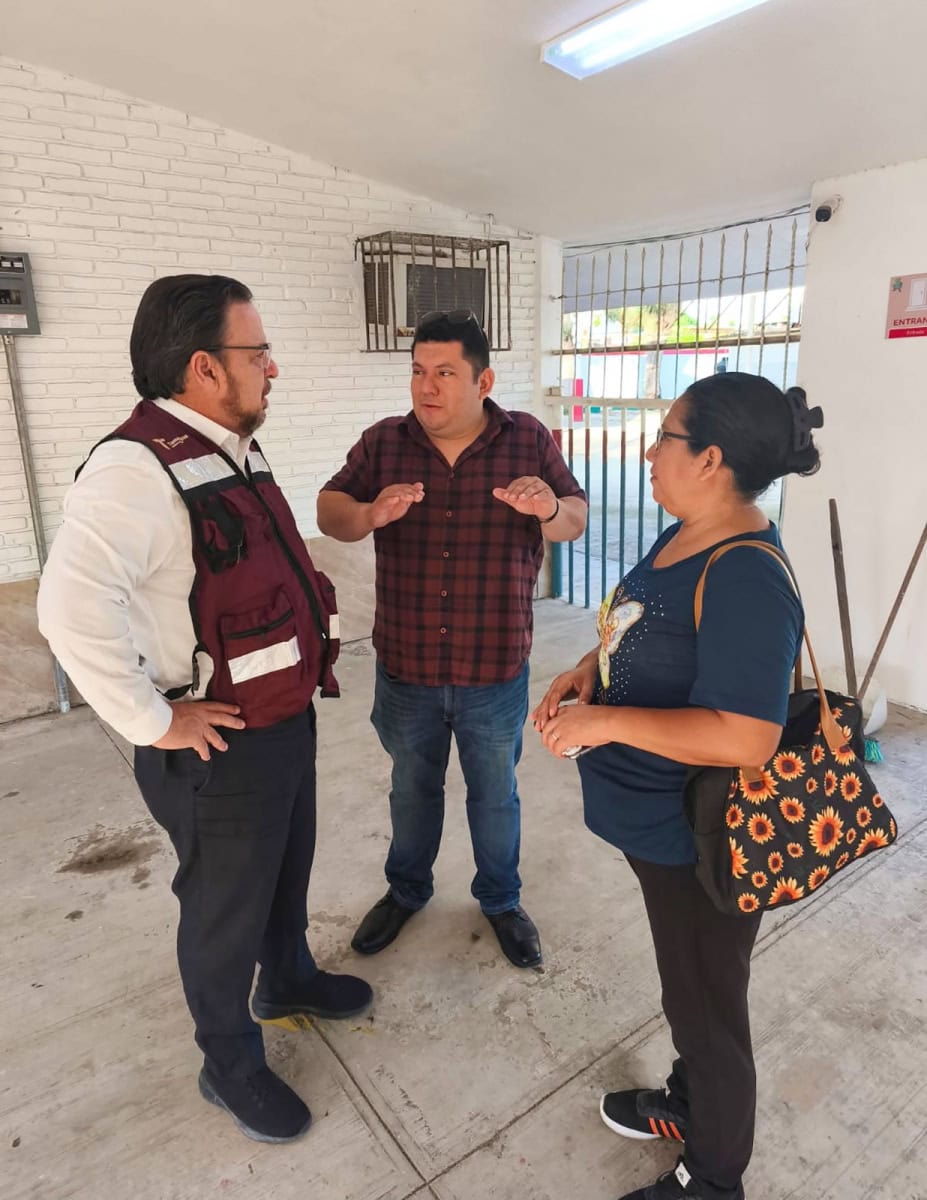 Durante el recorrido, Valdez García dialogó con madres, padres de familia, docentes y directivos, con quienes acordó acciones inmediatas de limpieza, reposición de materiales y atención técnica, para asegurar que las actividades académicas se desarrollen en condiciones seguras y adecuadas.