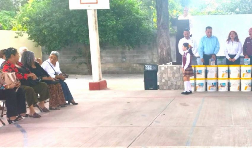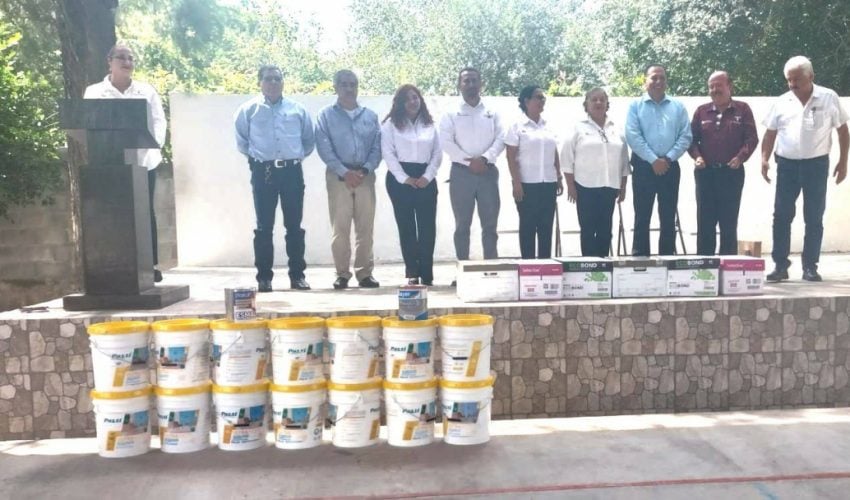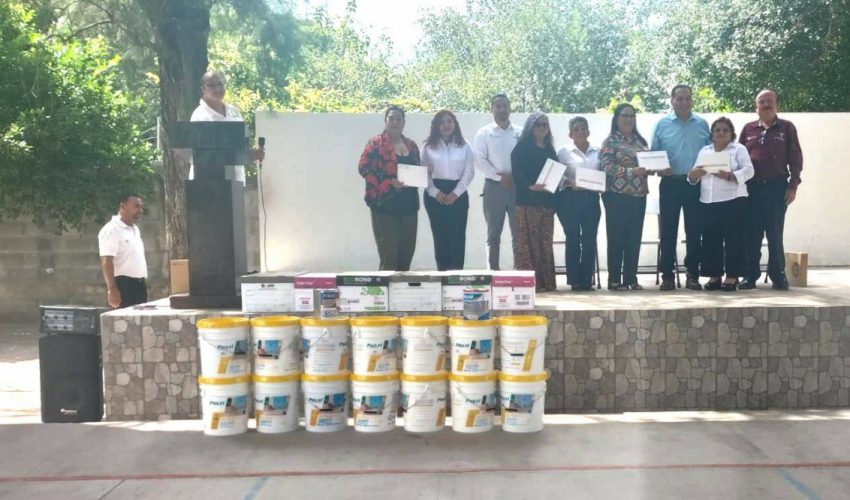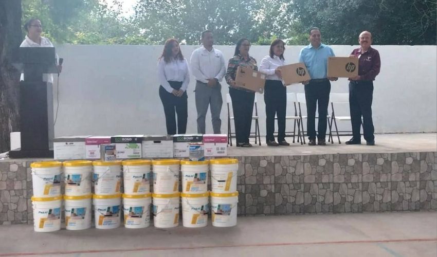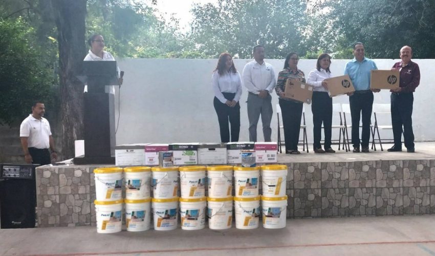 En visita trabajo, dotó de cubetas de pintura, computadoras portátiles a Supervisores de Primaria del sector 9, al Jefe de Sector 9 de primarias, y a la Jefa de Sector 9 de preescolar, asimismo entregó tabletas electrónicas a Supervisores escolares de preescolar y primaria.