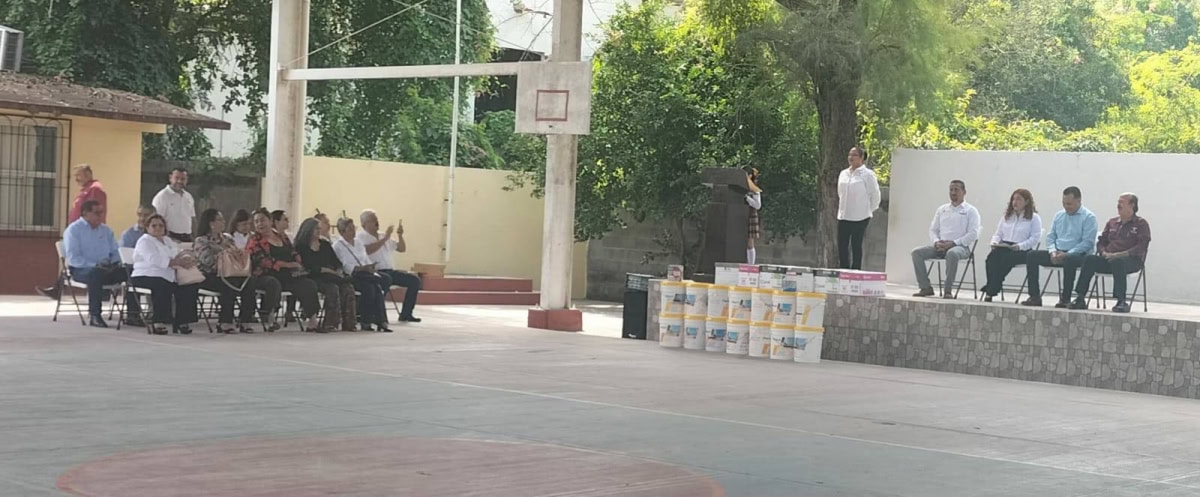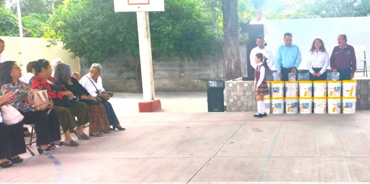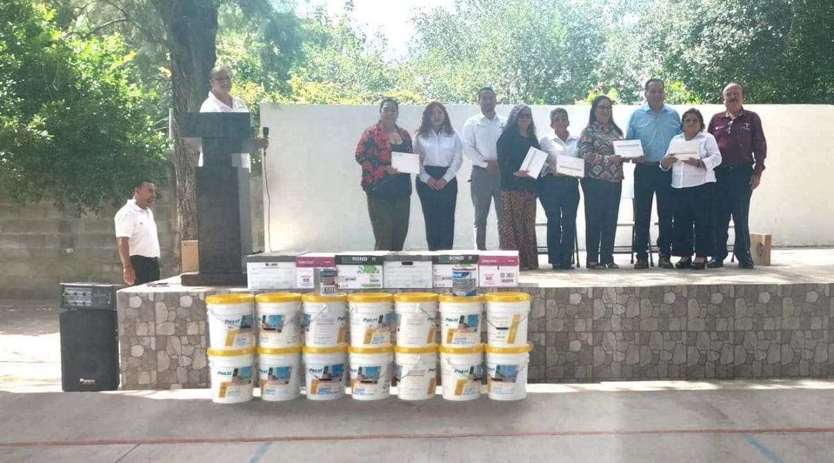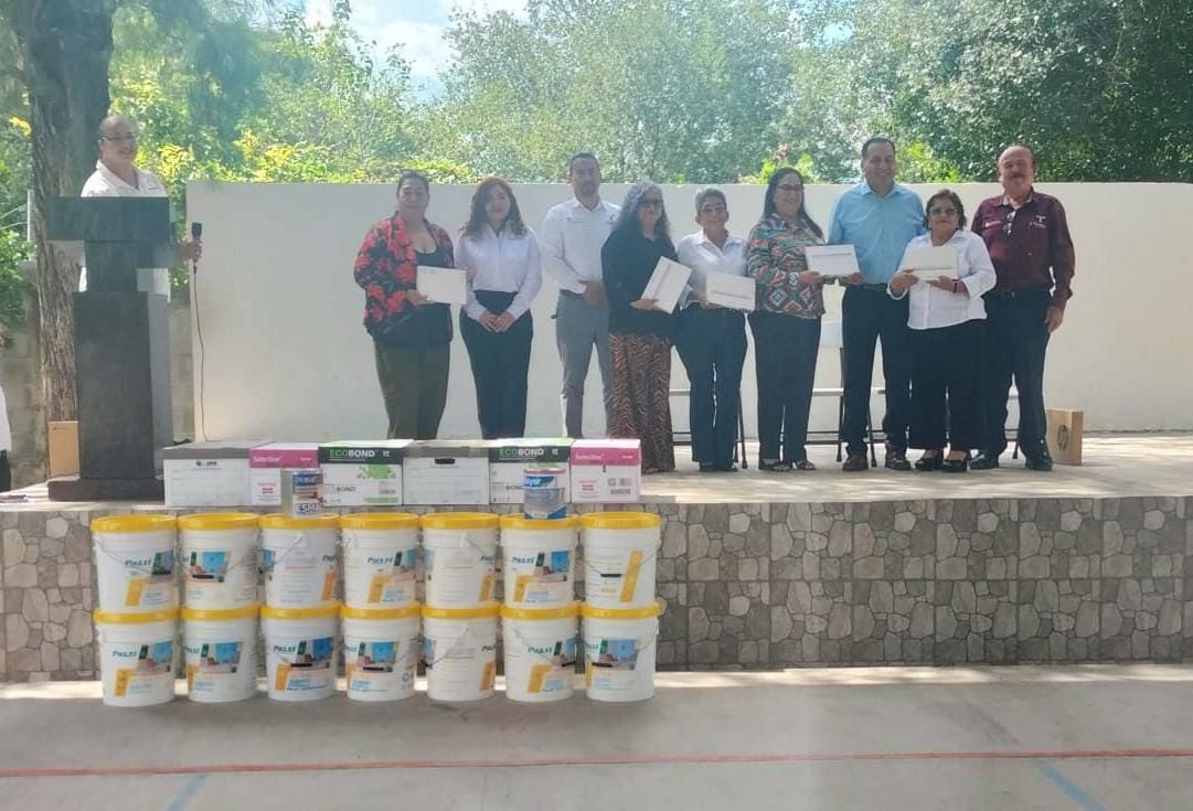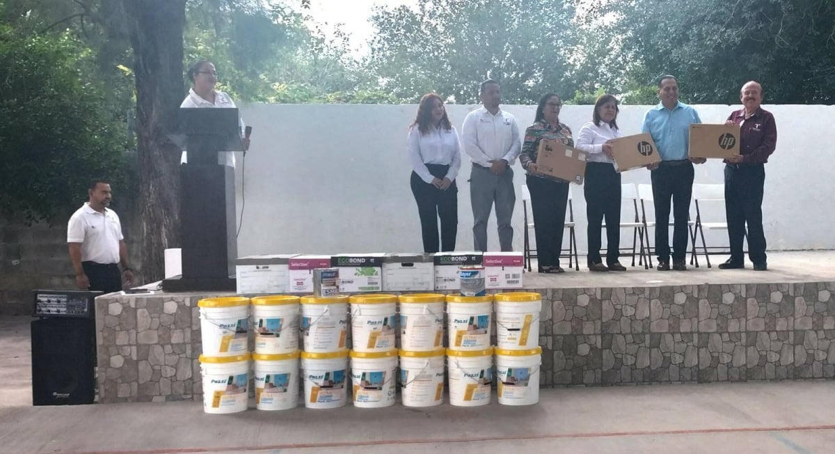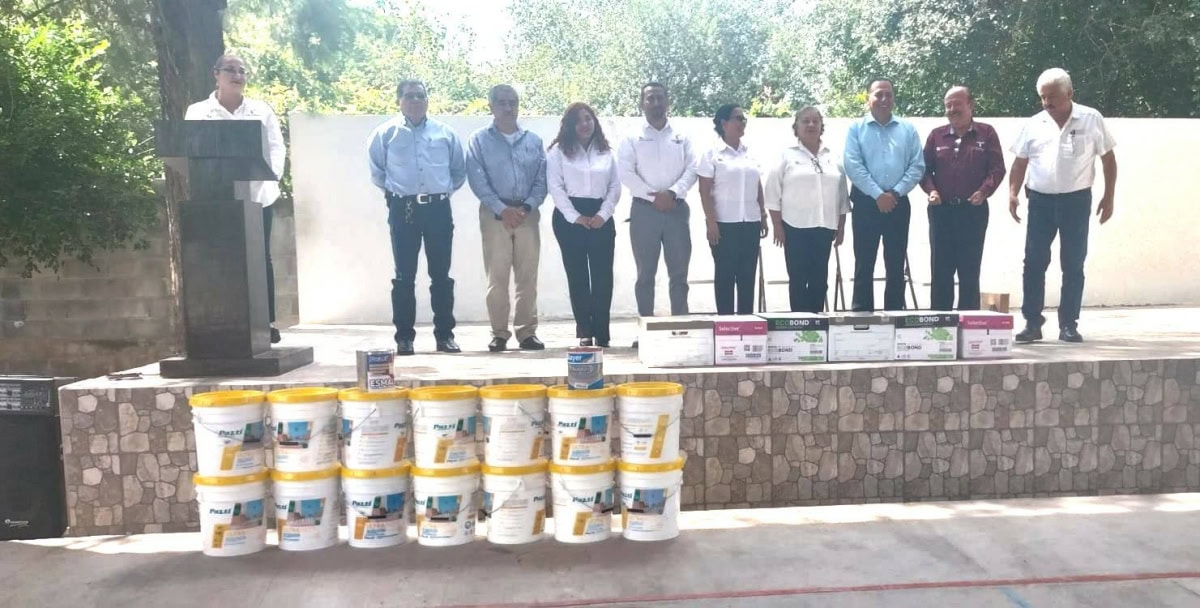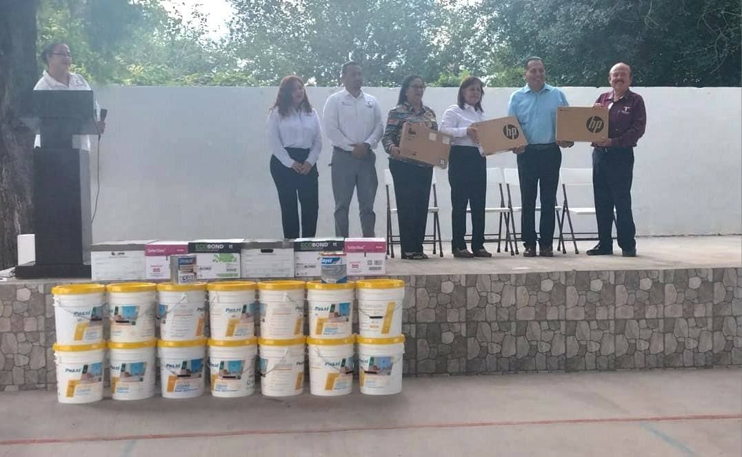 En visita trabajo, dotó de cubetas de pintura, computadoras portátiles a Supervisores de Primaria del sector 9, al Jefe de Sector 9 de primarias, y a la Jefa de Sector 9 de preescolar, asimismo entregó tabletas electrónicas a Supervisores escolares de preescolar y primaria.
