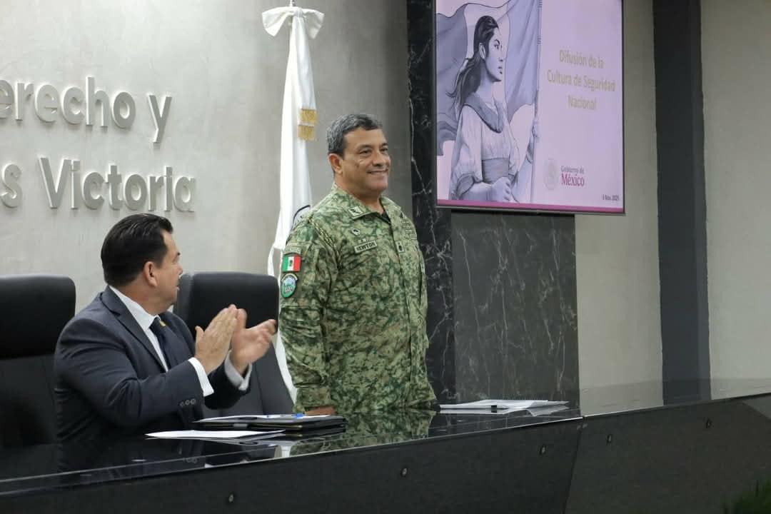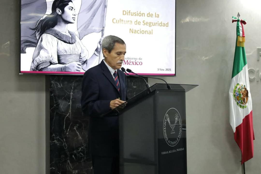 La ponencia, impartida por el General Brigadier del Estado Mayor, Newton Manuel Chávez Baños, se da en el marco del Programa General para la Difusión de la Cultura de Seguridad Nacional 2025–2030, impulsada por la Dirección de Educación Superior, de la Subsecretaría Media Superior y Superior de la SET.