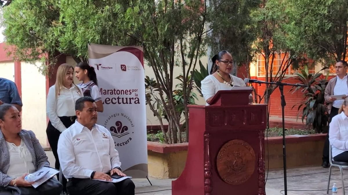 Por instrucciones del gobernador Américo Villarreal Anaya, y bajo el liderazgo del secretario de Educación, Miguel Ángel Valdez García, se levó a cabo el ‘Maratones por la Lectura’ en la Secundaria Técnica No. 6 “Lauro Aguirre” de Ciudad Victoria, en el marco del Día Internacional para la Eliminación de la Violencia contra las Mujeres, donde más de 880 estudiantes y docentes participaron en lecturas que fomentan la reflexión, el respeto y la crítica constructiva, principios clave de la Nueva Escuela Mexicana.
