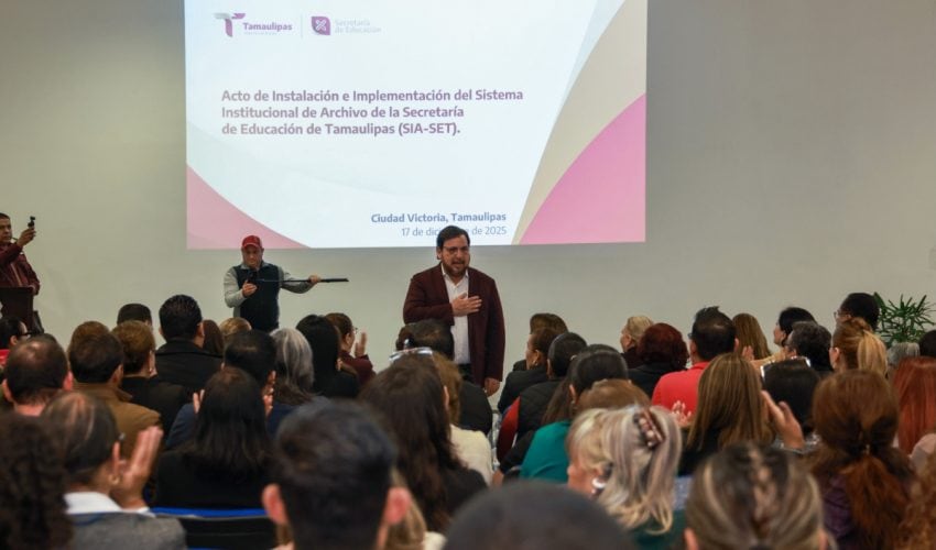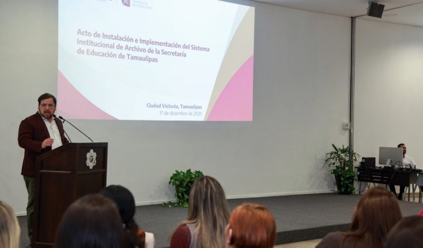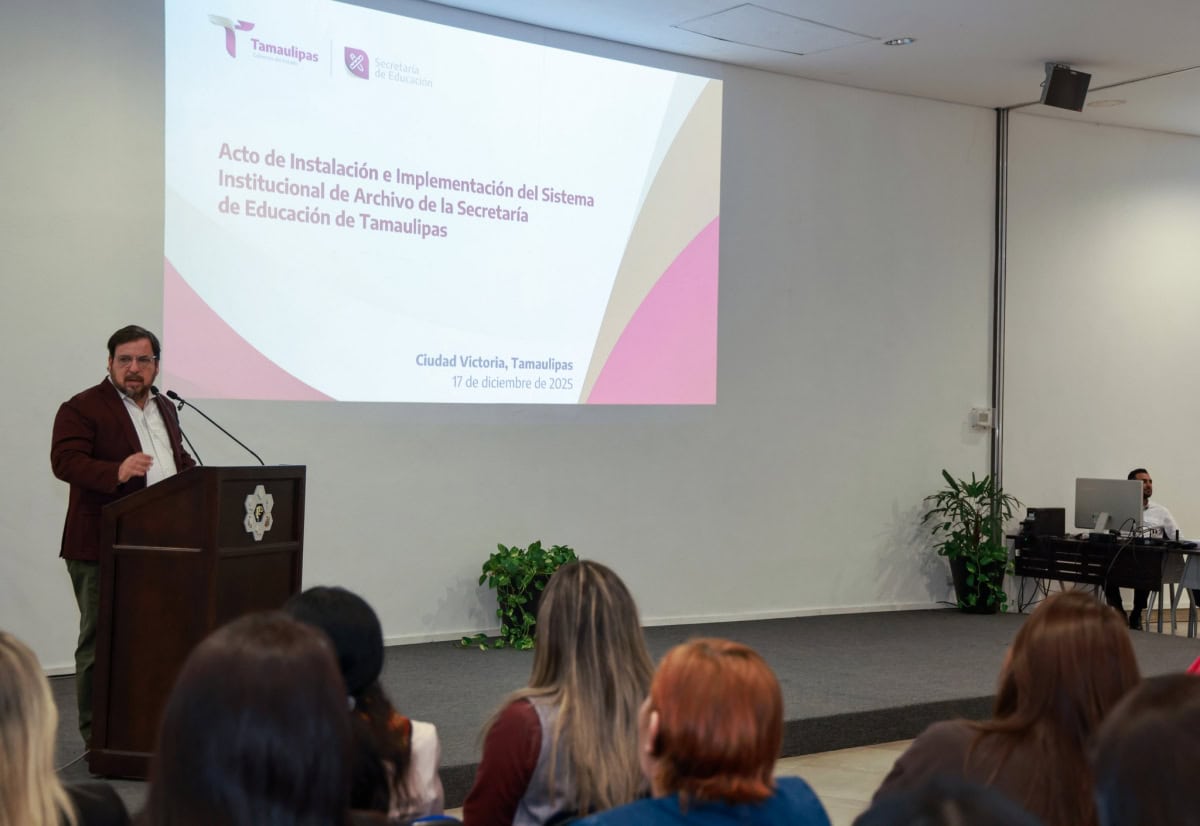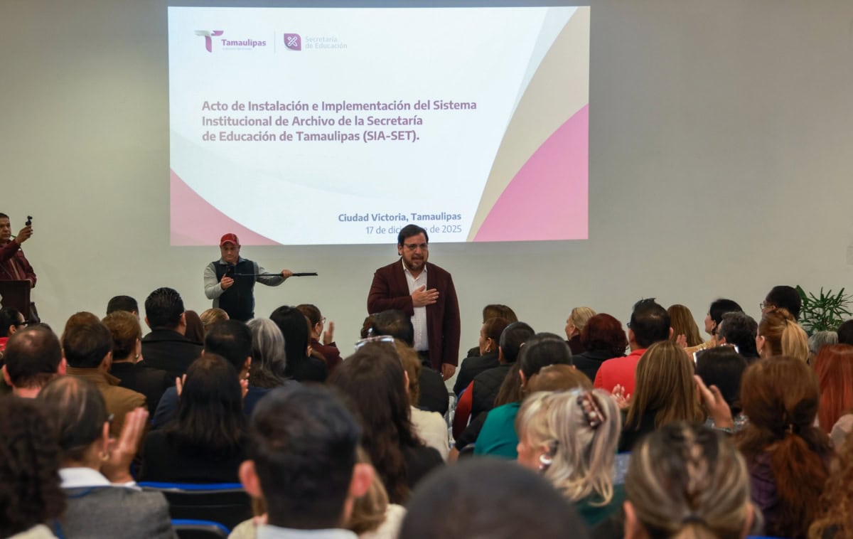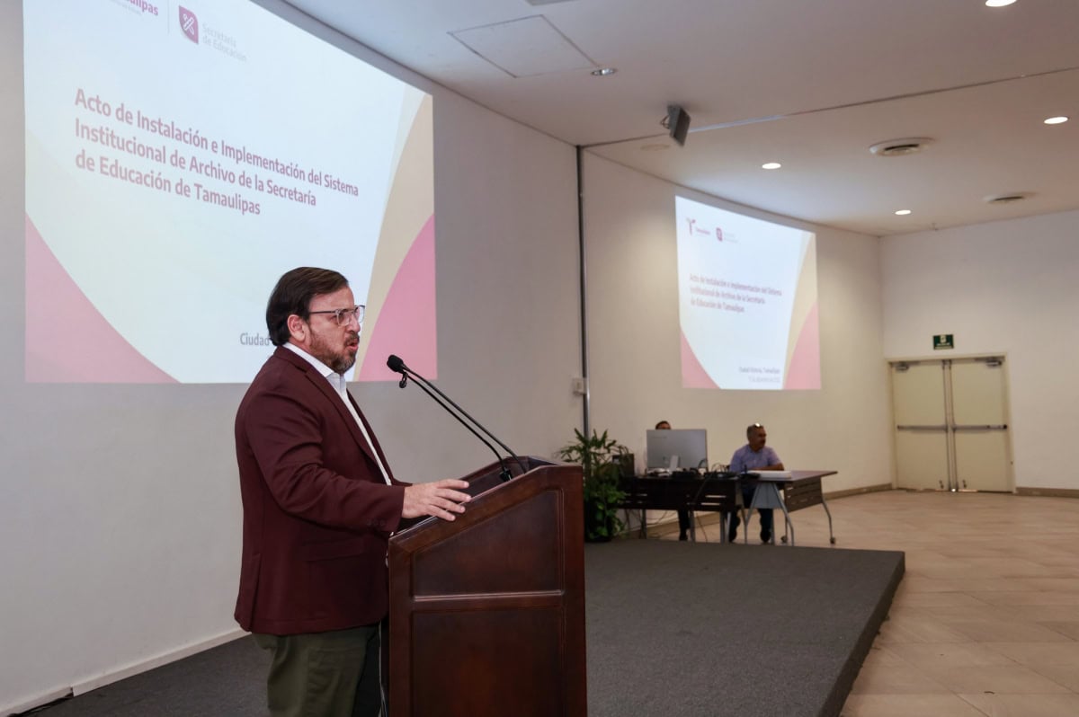 Para fortalecer la organización, conservación y acceso a la información institucional, el secretario de Educación de Tamaulipas, Miguel Ángel Valdez García, encabezó el Acto de Instalación e Implementación del Sistema Institucional de Archivos y la Instalación del Grupo Interdisciplinario de la Secretaría de Educación de Tamaulipas, realizados en el Centro Regional de Formación Docente e Investigación Educativa (CRETAM), en Ciudad Victoria.