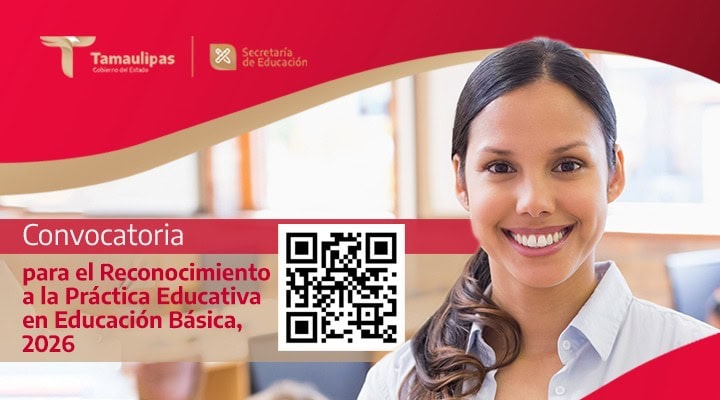 La Secretaría de Educación Pública, a través de la Secretaría de Educación de Tamaulipas invita las maestras y a los maestros frente a grupo, así como al personal con función de dirección o supervisión, a participar en el Reconocimiento a la Práctica Educativa en Educación Básica 2026.