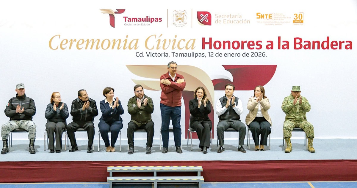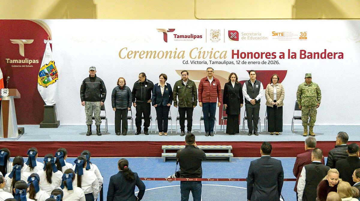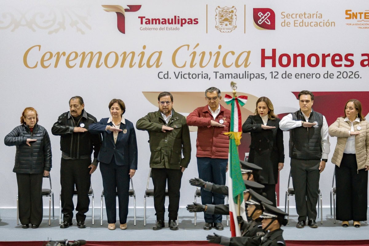 La Secretaría de Educación de Tamaulipas fue anfitriona y organizadora de la ceremonia de Honores a la Bandera, realizada en la Benemérita Escuela Normal Federalizada de Tamaulipas (BENFT), acto cívico que reafirma el respeto a nuestros símbolos patrios y marca el reinicio de la prestación del servicio educativo en todo el estado para niñas, niños, adolescentes y jóvenes.