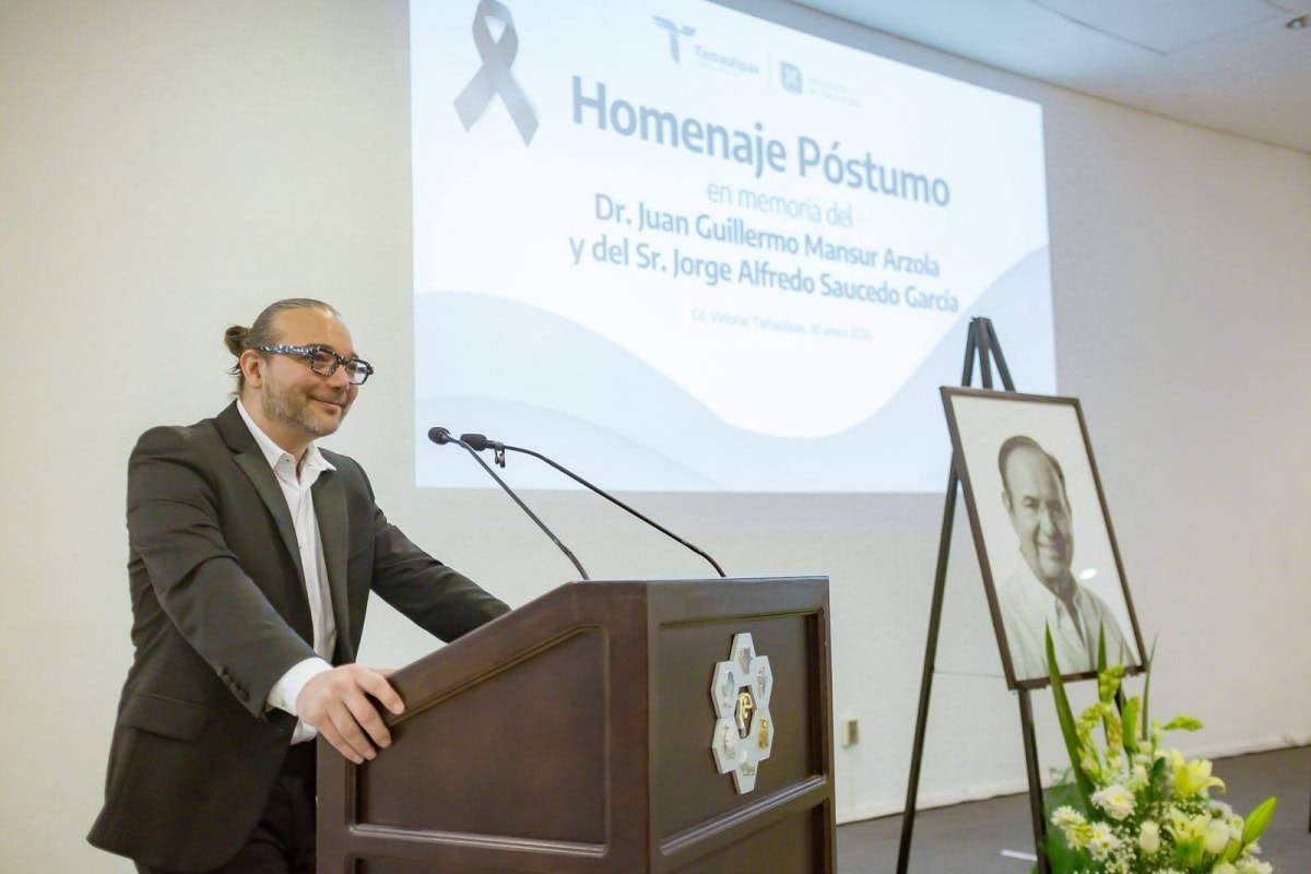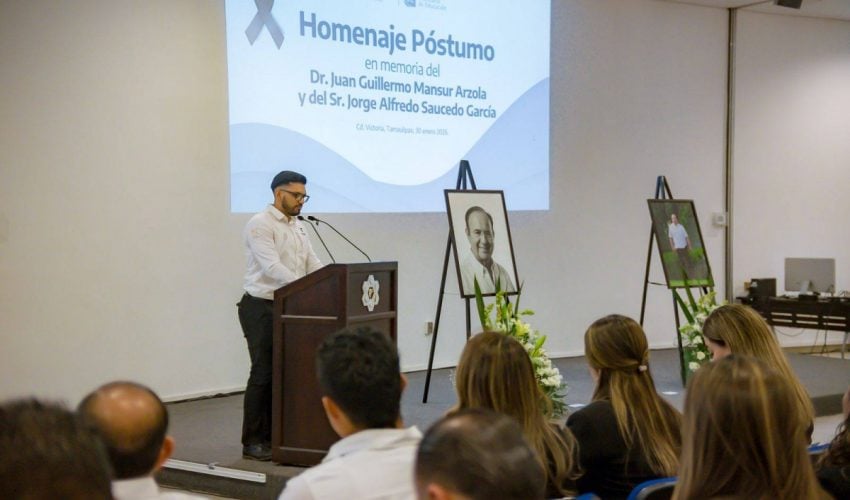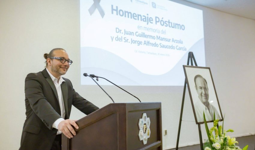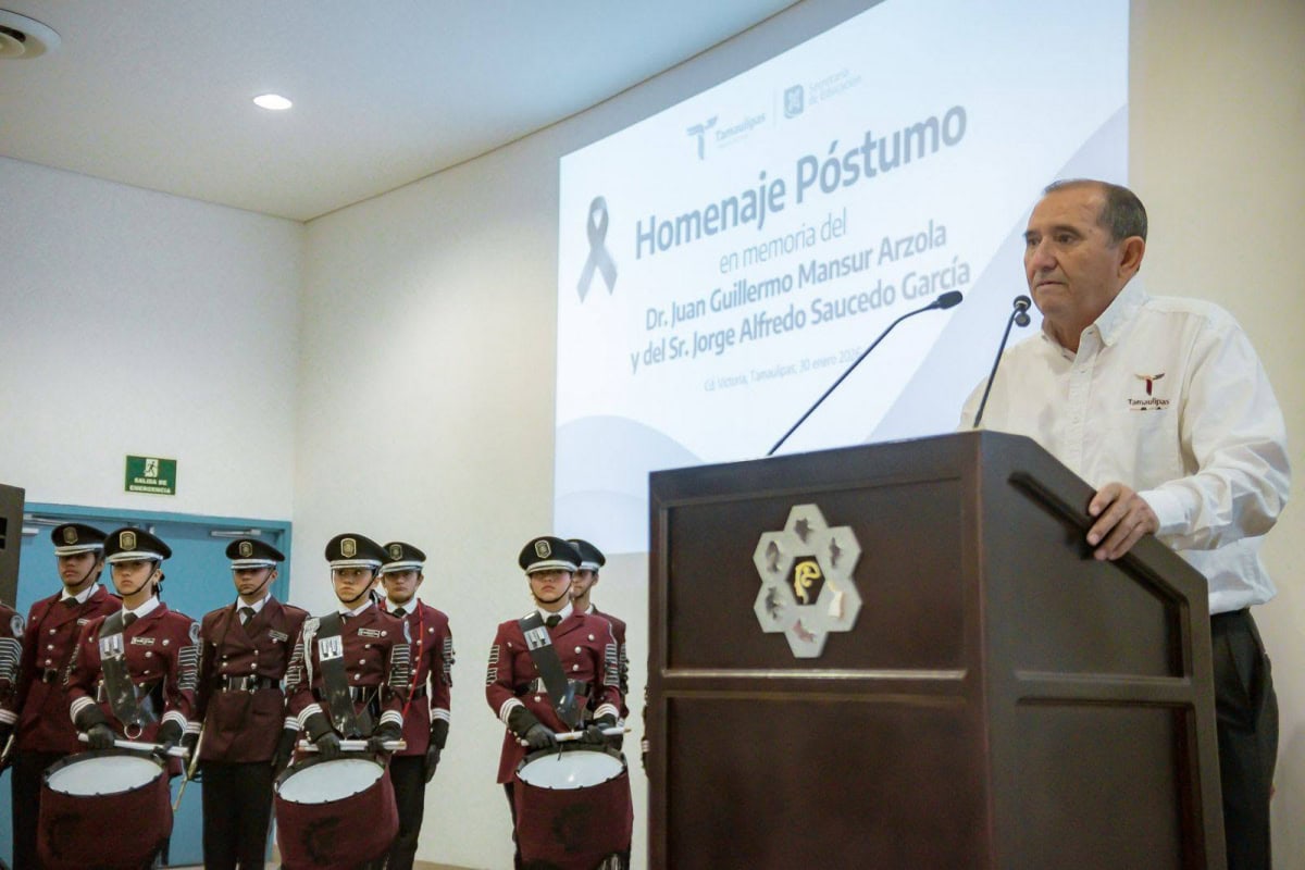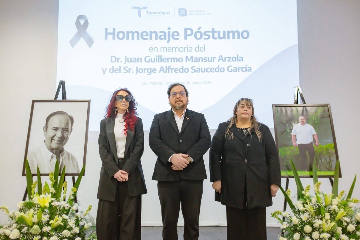 En emotivo evento, la Secretaría de Educación de Tamaulipas llevó a cabo un Homenaje Póstumo en memoria del Dr. Juan Guillermo Mansur Arzola y del Sr. Jorge Alfredo Saucedo García, en testimonio de respeto y reconocimiento a su trayectoria institucional, entrega al servicio público y leal compromiso con la administración pública de Tamaulipas.