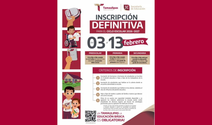 ¡En Tamaulipas las inscripciones definitivas son en febrero!