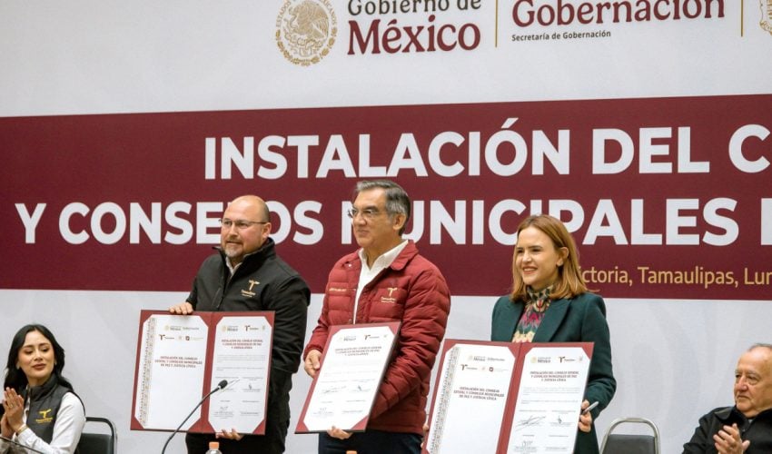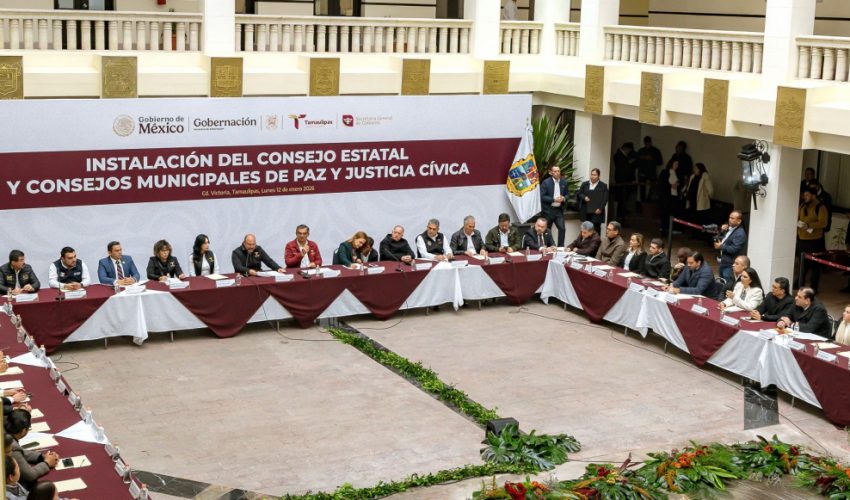 Se realizó la Instalación del Consejo Estatal y de los Consejos Municipales de Paz y Justicia Cívica, presidida por el gobernador Américo Villarreal Anaya, como parte de la estrategia nacional de atención a las causas de la violencia.