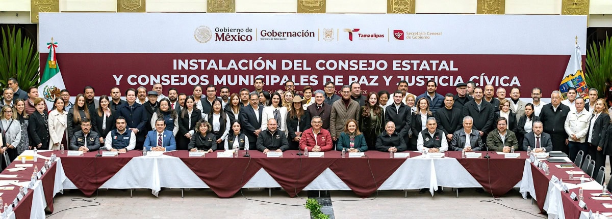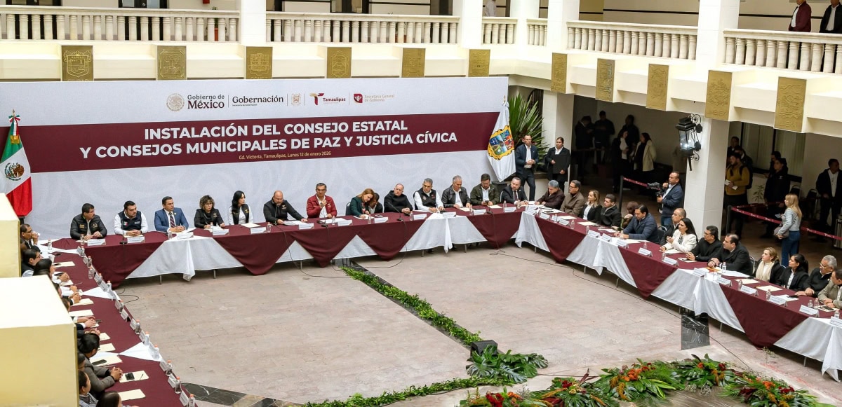 Se realizó la Instalación del Consejo Estatal y de los Consejos Municipales de Paz y Justicia Cívica, presidida por el gobernador Américo Villarreal Anaya, como parte de la estrategia nacional de atención a las causas de la violencia.