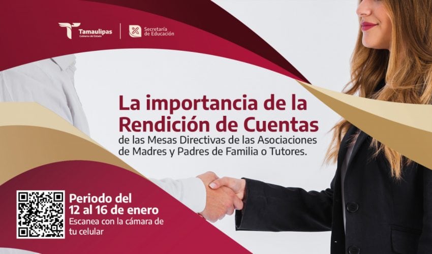 La transparencia y rendición en el uso de los recursos financieros de la Mesa Directiva Escolar, fortalece la confianza y el trabajo conjunto, por lo que la Secretaría de Educación de Tamaulipas, a través de la Unidad Ejecutiva, la Dirección de Participación Social y el Departamento de Vinculación con Asociaciones, atendiendo a lo establecido en el Artículo 25 fracción VII del Reglamento para la Constitución, Registro, Organización y Funcionamiento de las Asociaciones de Madres, Padres de Familia o Tutores de los Educandos en las Escuelas de Educación Básica, Públicas y Particulares del Estado de Tamaulipas, invita a que realicen su informe bimestral ingresando a la Plataforma para el Sistema de Captura de las Asociaciones de Madres, Padres de Familia o Tutores (SICAPF) en el siguiente enlace: https://apf-ue.tamaulipas.gob.mx, en el periodo comprendido del 12 al 16 de enero de 2026.