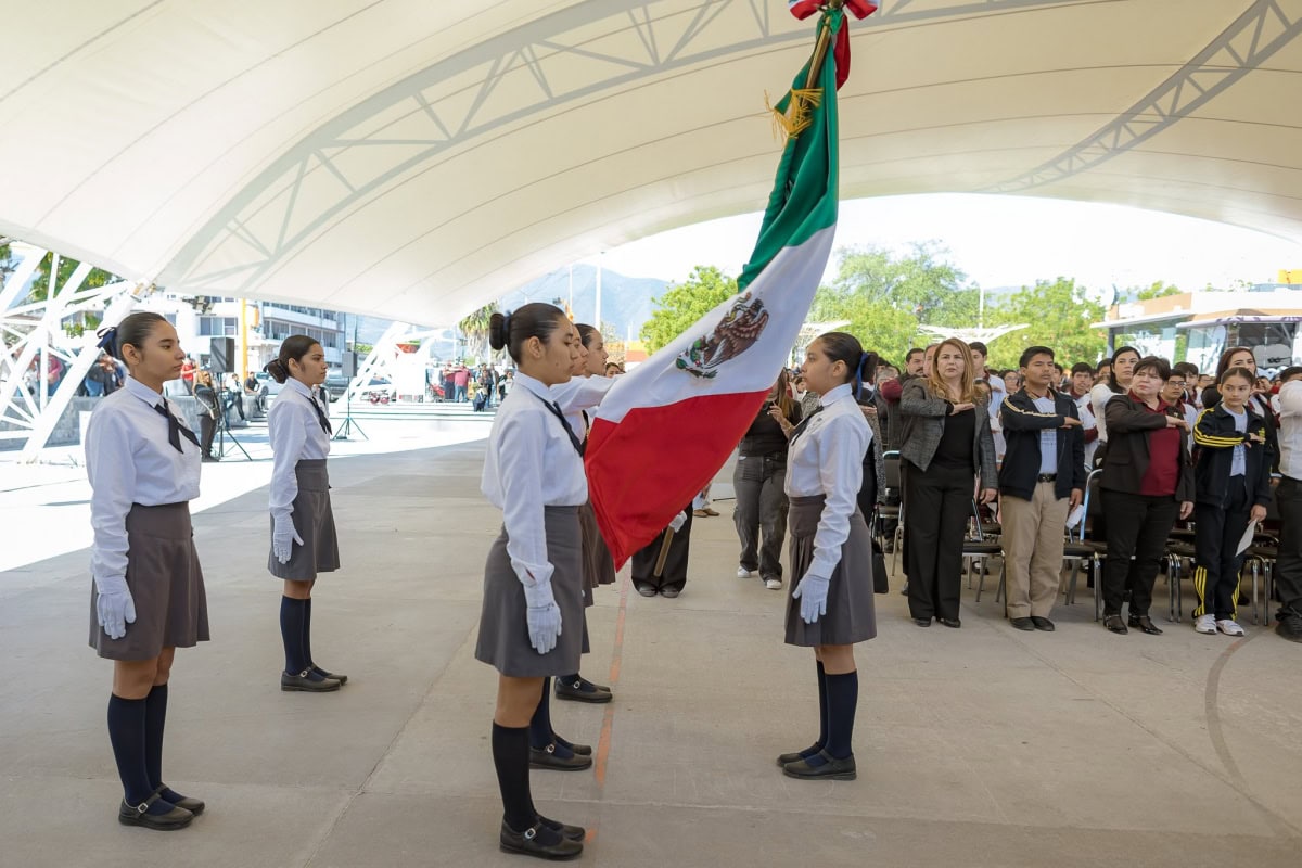 En su mensaje, Valdez García celebró que se contemplen e impulsen estrategias que consolidan la educación cívica y la participación activa de la comunidad escolar, que hacen posible que niñas, niños y adolescentes desarrollen orgullo por su tierra y contribuyan, desde las aulas, a un futuro con mayor cohesión social y bienestar.