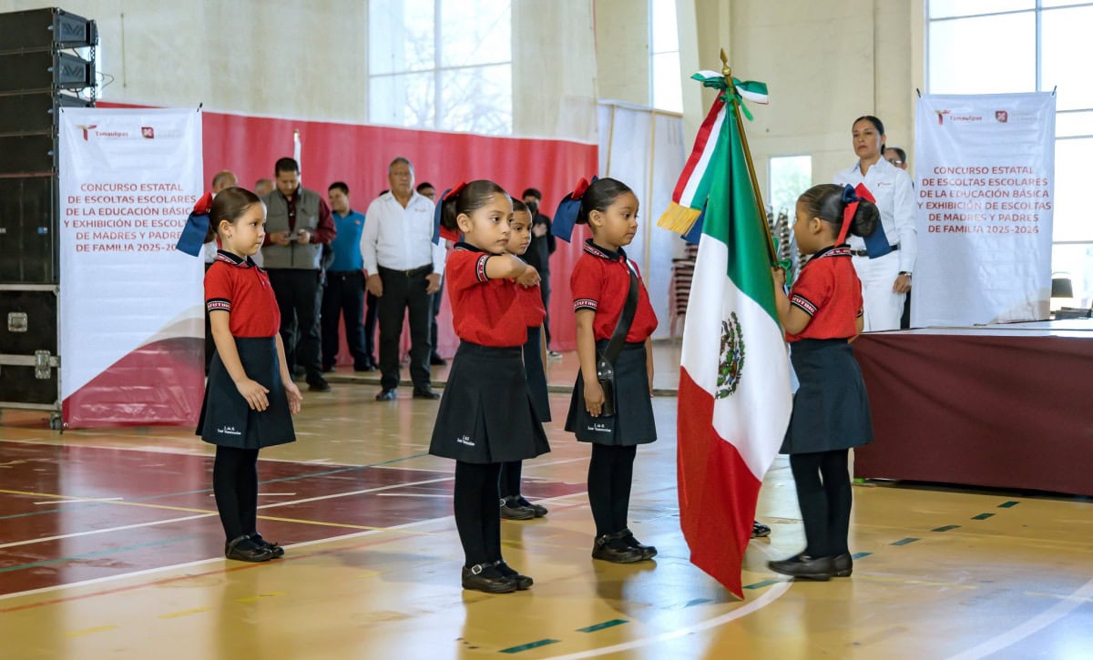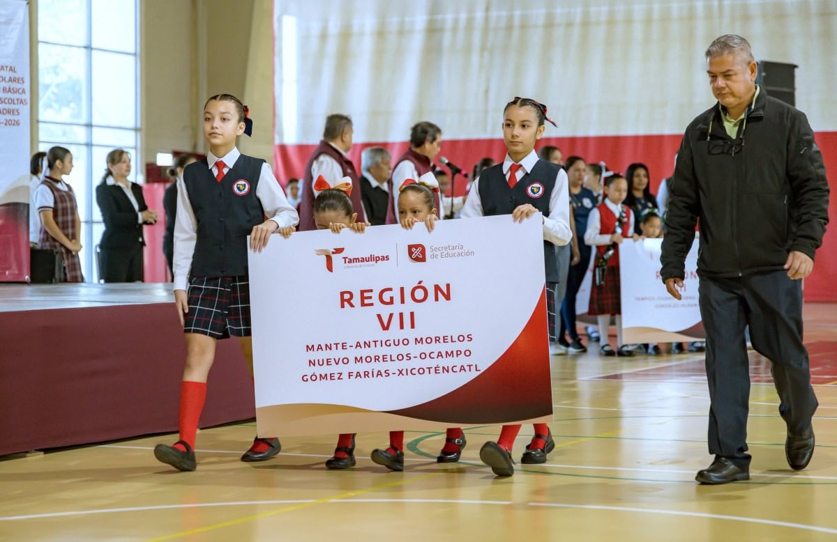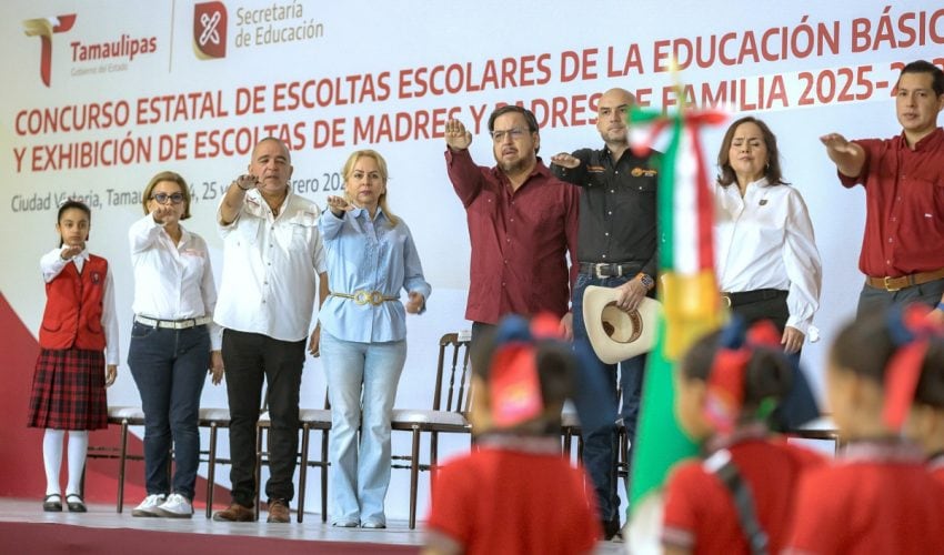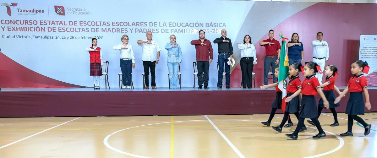 La Secretaría de Educación de Tamaulipas realizó la Ceremonia de Inauguración del Concurso de Escoltas Escolares de la Educación Básica y Exhibición de Escoltas de Padres y Madres de Familia 2025-2026, en el Polideportivo ‘Ing. Américo Villarreal Guerra’, en Ciudad Victoria.