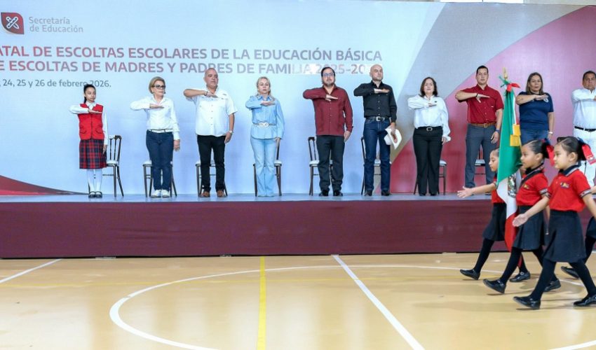 El concurso cuenta con representantes de las escoltas de preescolar, primaria y secundaria, y se realiza del 24 al 26 de febrero e incluye la participación de 24 escuelas, 144 alumnas y alumnos, 56 figuras educativas, 60 madres y padres de familia y 24 jueces.