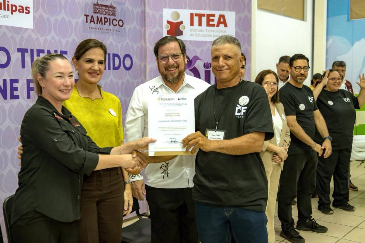 Presidida por el secretario de Educación, Miguel Ángel Valdez García, junto a la presidenta municipal Mónica Zacil Villarreal Anaya y la presidenta del Sistema DIF Tampico, Luz Adriana Villarreal Anaya, acompañados por la directora del ITEA, Gloria Guadalupe González González, en este acto se entregaron constancias de alfabetización a educandos de la comunidad sorda, reafirmando el compromiso con una educación inclusiva y de calidad.