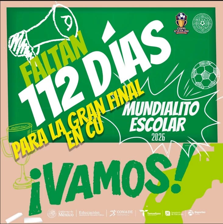 Faltan 112 días para la gran final del Mundialito Escolar 2026, a celebrarse en el Estadio Olímpico Universitario de la UNAM en la Ciudad de México.