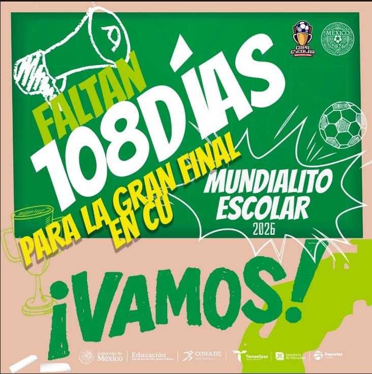 Faltan 108 días para la gran final del Mundialito Escolar 2026, a celebrarse en el Estadio Olímpico Universitario de la UNAM en la Ciudad de México.