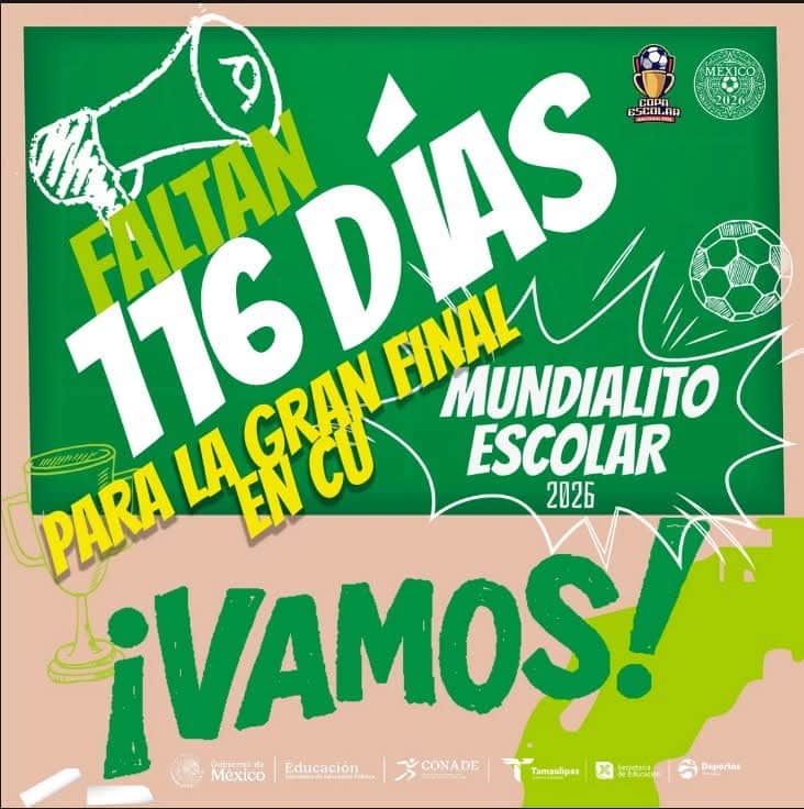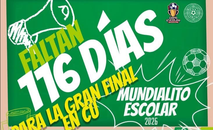 Faltan 116 días para la gran final del Mundialito Escolar 2026, a celebrarse en el Estadio Olímpico Universitario de la UNAM en la Ciudad de México.