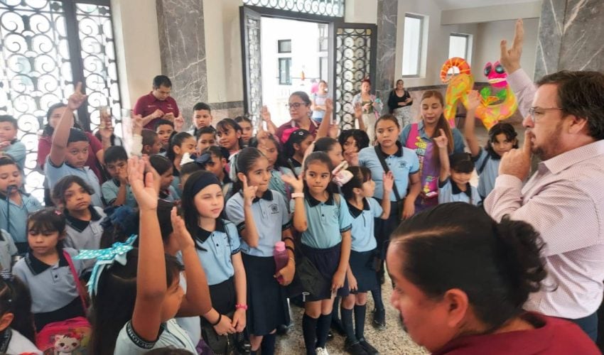 Miguel Ángel Valdez García, secretario de Educación de Tamaulipas, saludó y convivió con alumnas y alumnos de la Escuela Primaria Naciones Unidas, del turno vespertino, ubicada en la Colonia Casas Blancas, quienes visitaron el Palacio de Gobierno del Estado, ello como parte de las actividades de la estrategia Academia Social de Valores.