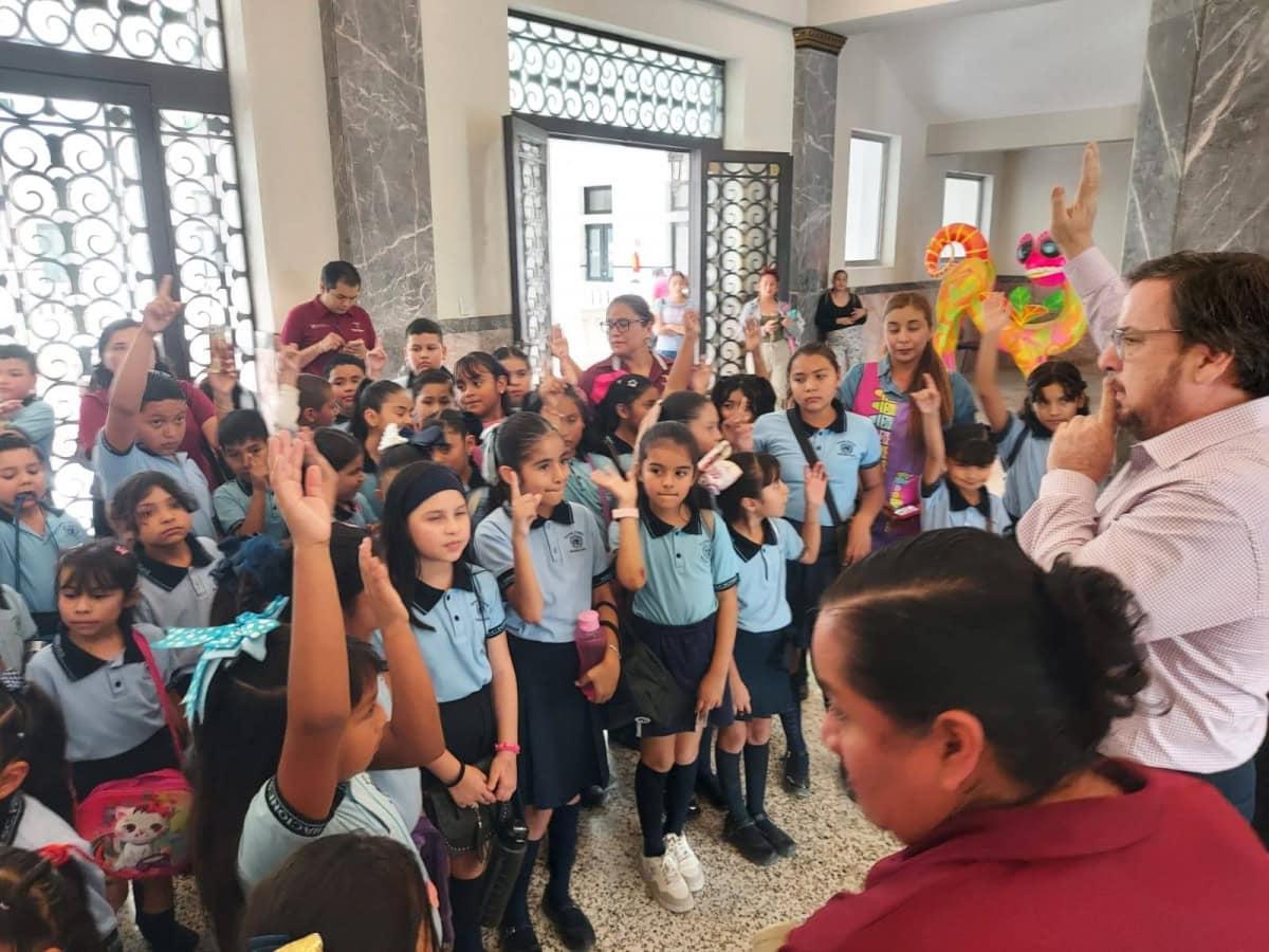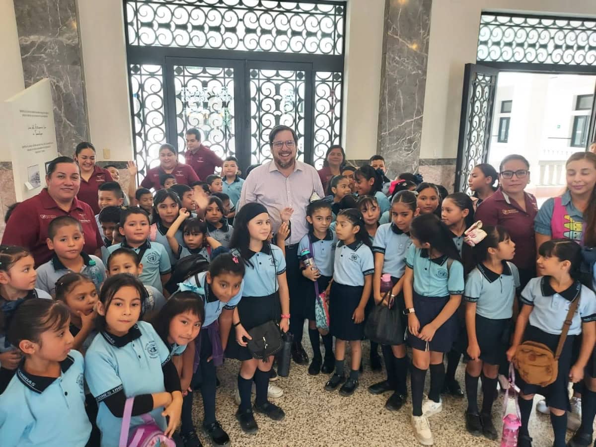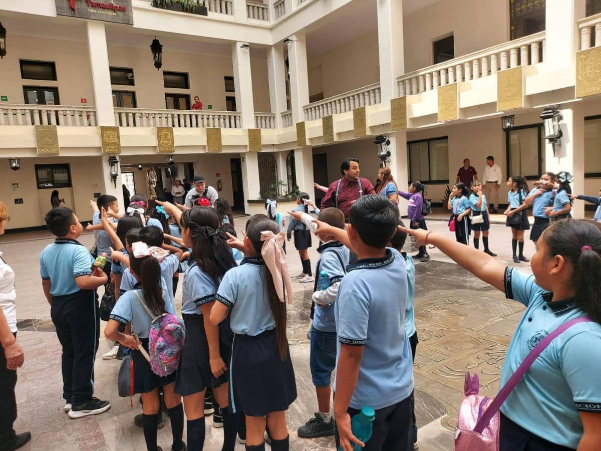 Miguel Ángel Valdez García, secretario de Educación de Tamaulipas, saludó y convivió con alumnas y alumnos de la Escuela Primaria Naciones Unidas, del turno vespertino, ubicada en la Colonia Casas Blancas, quienes visitaron el Palacio de Gobierno del Estado, ello como parte de las actividades de la estrategia Academia Social de Valores.