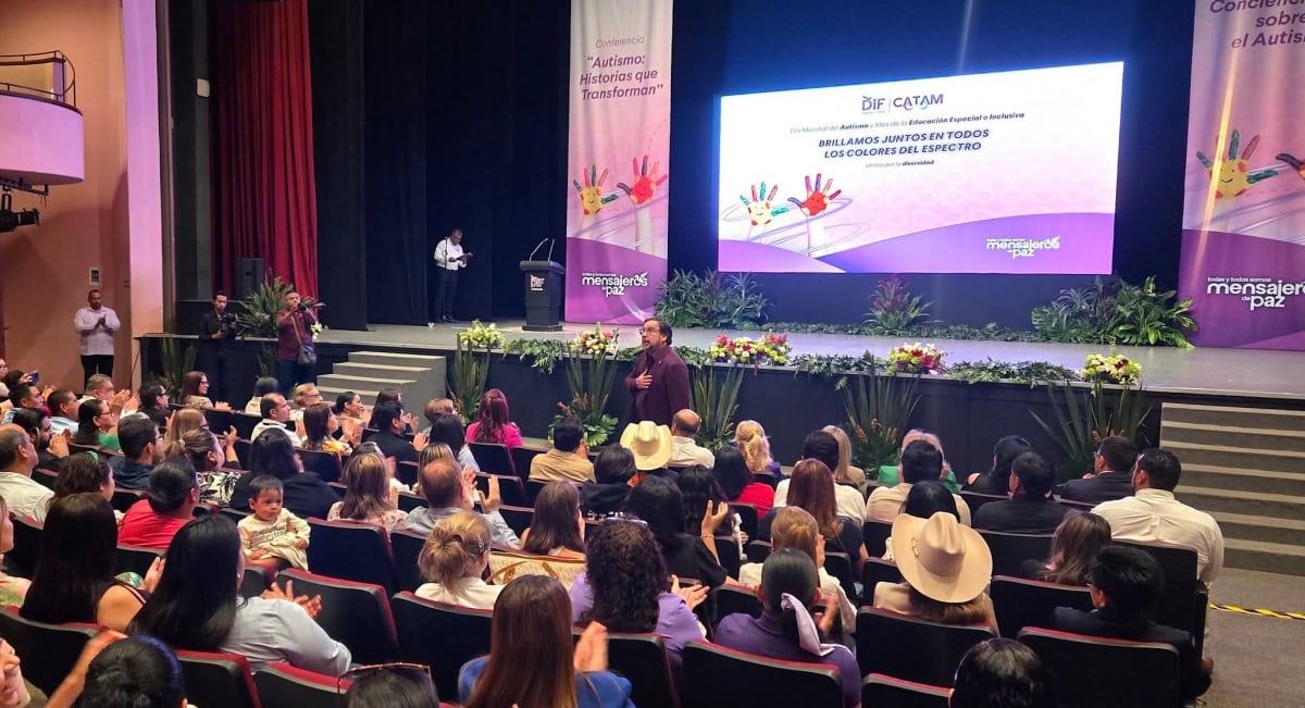 El secretario de Educación de Tamaulipas, Miguel Ángel Valdez García, asistió a la conferencia “Autismo: Historias que Transforman”, organizada por el Sistema DIF Tamaulipas, a través del Centro de Autismo Tamaulipas (CATAM), en el Teatro Amalia G. de Castillo Ledón, acompañado de familias, docentes, especialistas y sociedad en general.