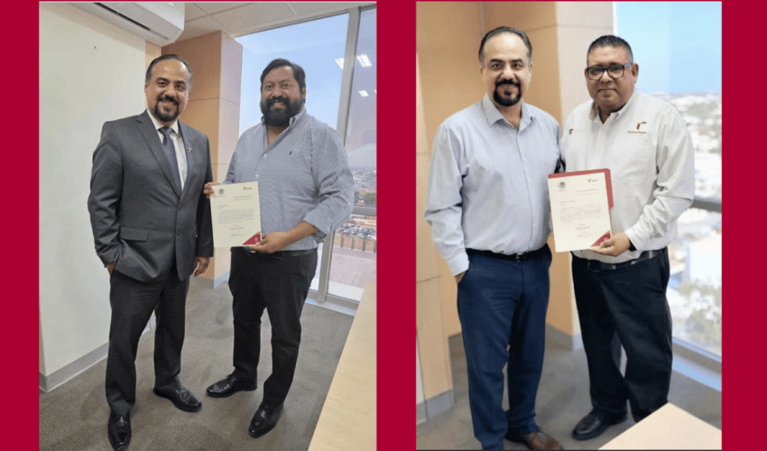 En nombre del secretario de Educación, Miguel Ángel Valdez García, el titular de la Subsecretaría de Educación Media Superior y Superior (SEMSYS), Igor Crespo Solís, entregó los nombramientos, otorgados por el gobernador del Estado, Américo Villarreal Anaya, a Luis Manuel Salazar García, como Director de Educación Superior, y a Arturo García Valdéz, como Coordinador de Organismos Públicos Descentralizados.