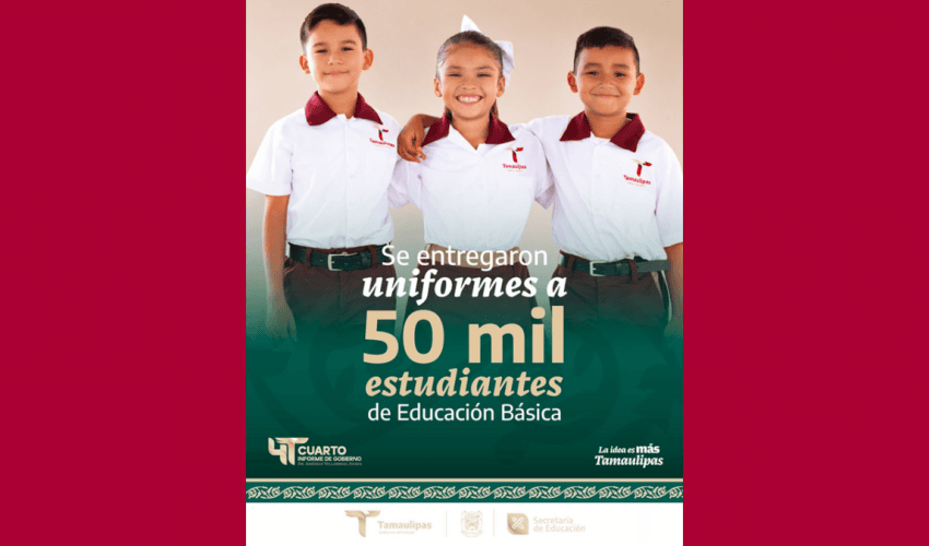 Se entregaron uniformes a 50 mil estudiantes de Educación Básica en el estado, fortaleciendo las condiciones de bienestar y permanencia escolar para niñas y niños.