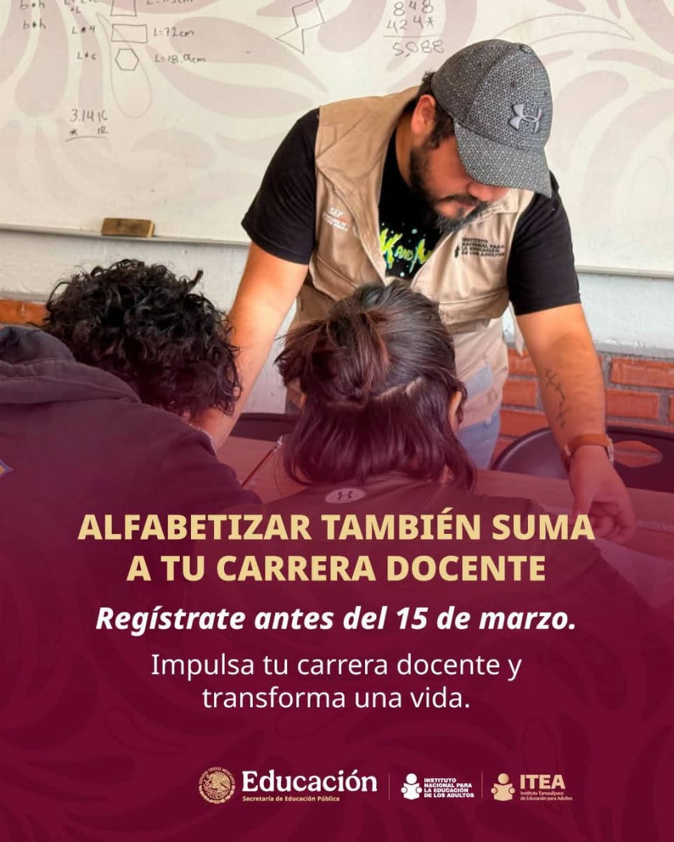 Se invita a maestras y maestros de Educación Básica, a participar en el Programa de Alfabetización del Instituto Tamaulipeco de Educación para Adultos ITEA Tamaulipas y con ello obtener un punto adicional en su proceso de promoción vertical, horizontal u horas adicionales.