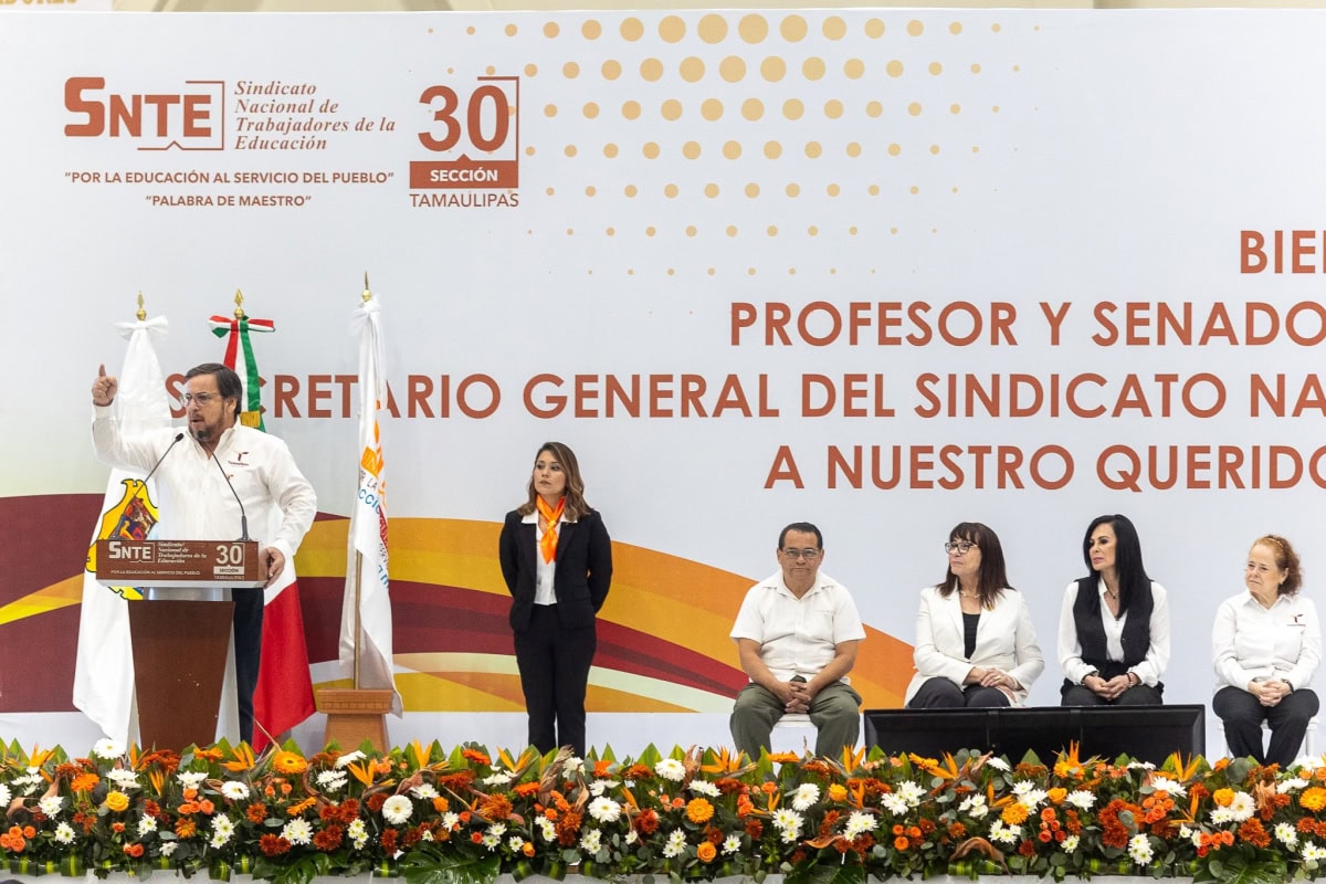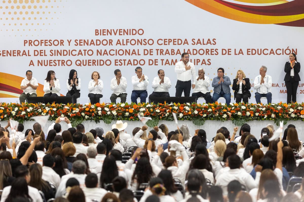 Ante miles de docentes que se dieron cita desde varios municipios del estado, el gobernador resaltó la función indispensable que cumplen las y los maestros en la transformación de Tamaulipas, reafirmando que, desde el Gobierno de la República, bajo el liderazgo de la presidenta Claudia Sheinbaum Pardo, se ha respaldado de manera extraordinaria al magisterio, gracias al trabajo colaborativo y solidario por el bien de las niñas, niños y jóvenes en México.