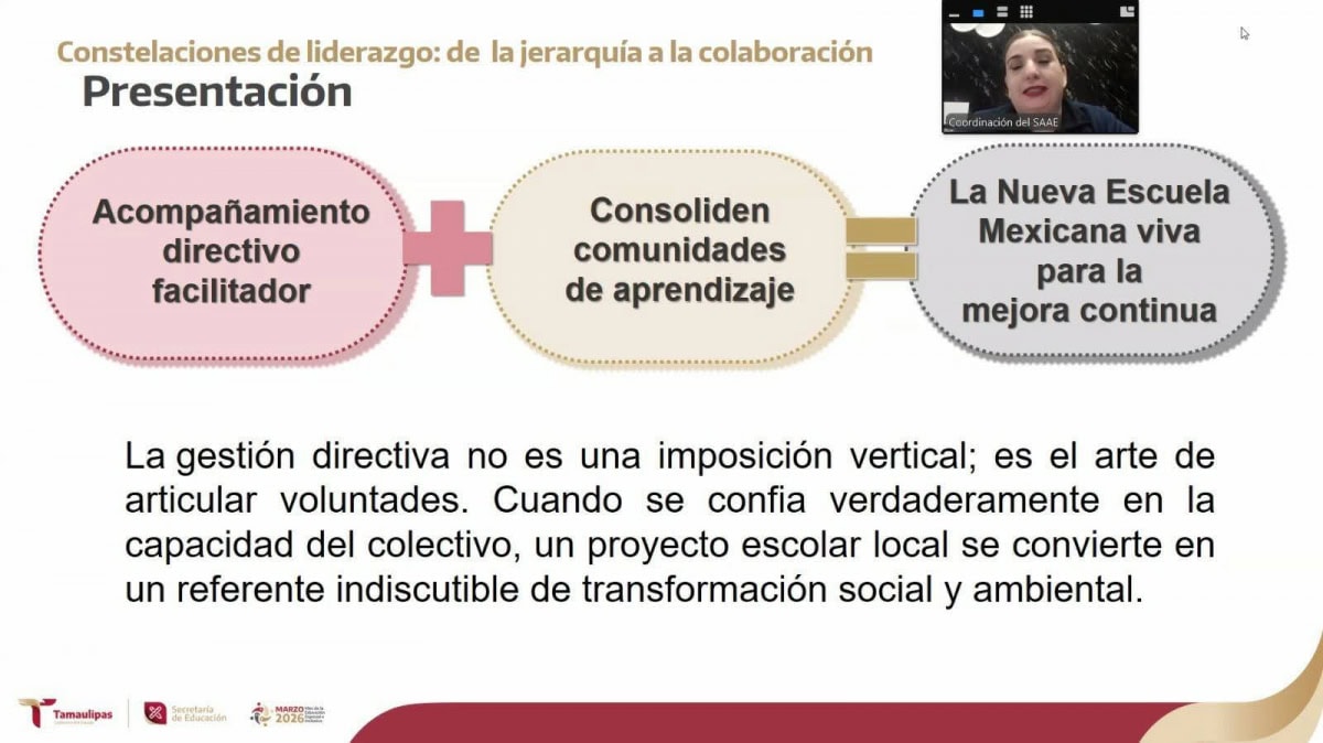 Estos encuentros de diálogo impulsan la mejora continua de la práctica profesional docente, en armonía con la política educativa del Gobierno del Estado que dirige Américo Villarreal Anaya, que permite fortalecer el proceso de enseñanza por parte de las comunidades de aprendizaje.