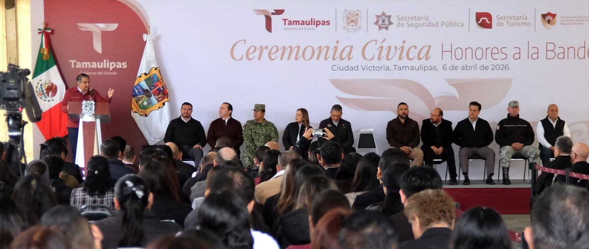 El secretario de Educación de Tamaulipas, Miguel Ángel Valdez García, asistió a la Ceremonia de Honores a la Bandera en el C3 de Ciudad Victoria, presidida por el gobernador Américo Villarreal Anaya.