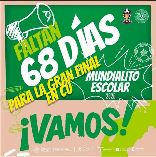 Faltan 68 días para la gran final del Mundialito Escolar 2026, a celebrarse en el Estadio Olímpico Universitario de la UNAM en la Ciudad de México.