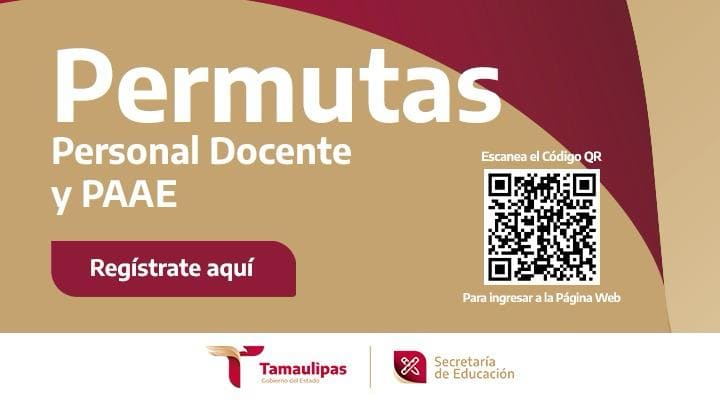 La Secretaría de Educación de Tamaulipas, a través de la Coordinación del Sistema para la Carrera de las Maestras y los Maestros, invita a participar en el Proceso de Permutas de Centro de Trabajo, en el ciclo escolar 2026-2027.