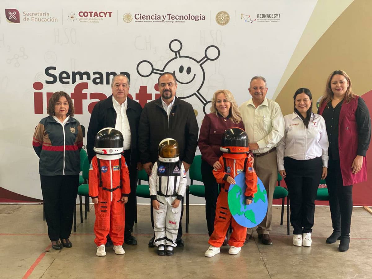 Como parte de las acciones para fomentar el interés por la ciencia, la tecnología y la innovación desde edades tempranas, el subsecretario de Educación Media Superior y Superior, Igor Crespo Solís, en representación del secretario de Educación de Tamaulipas, Miguel Ángel Valdez García, encabezó la ceremonia inaugural de las actividades de la Semana Infantil de la Ciencia, con la participación de más de 380 educandos, realizada en Escuela Primaria “Enrique C. Rébsamen”, de Ciudad Victoria.
