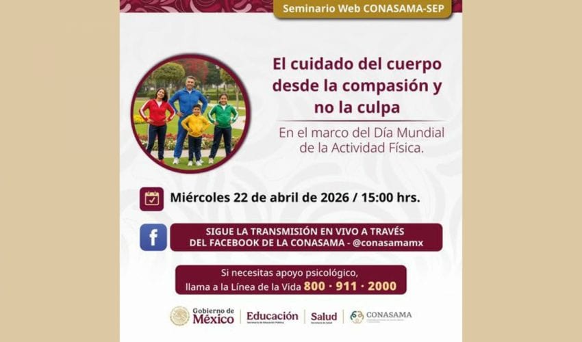 Se invita al Seminario Web Comisión Nacional de Salud Mental y Adicciones (CONASAMA)- Secretaría de Educación Pública (SEP), en el marco del Día Mundial de la Actividad Física.