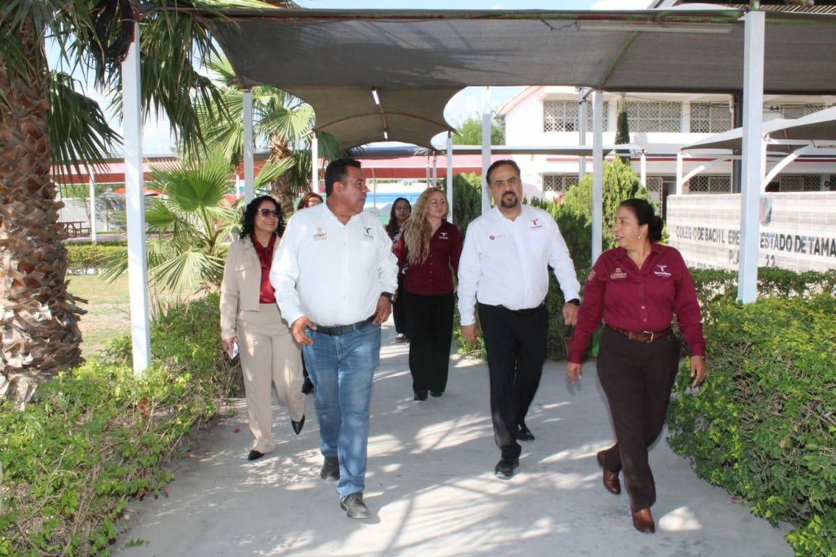 En compañía de Víctor Manuel González Salum, director general del COBAT, se acordaron acciones y estrategias a impulsar para seguir consolidando la calidad educativa en este subsistema, reafirmando el compromiso de la Secretaría de Educación de Tamaulipas de garantizar infraestructura, organización escolar y atención integral educativas para el estudiantado del nivel medio superior.