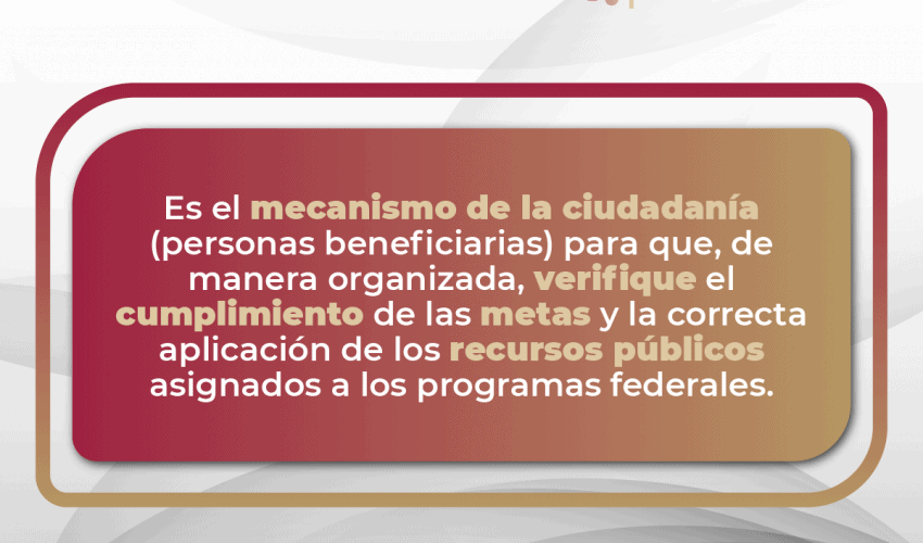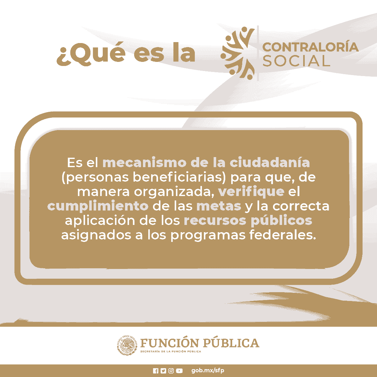 “Se reconoce a la Contraloría Social como el mecanismo de los beneficiarios, de manera organizada, para verificar el cumplimiento de las metas y correcta aplicación de los recursos públicos asignados a los Programas Federales de Desarrollo Social”.