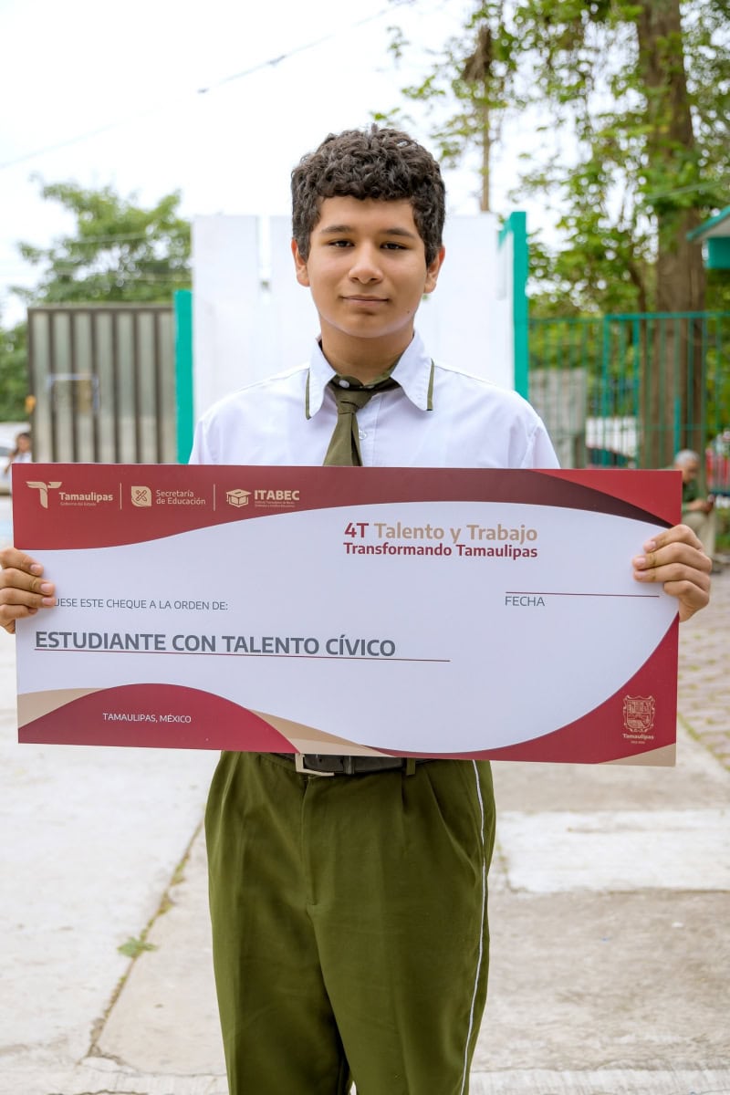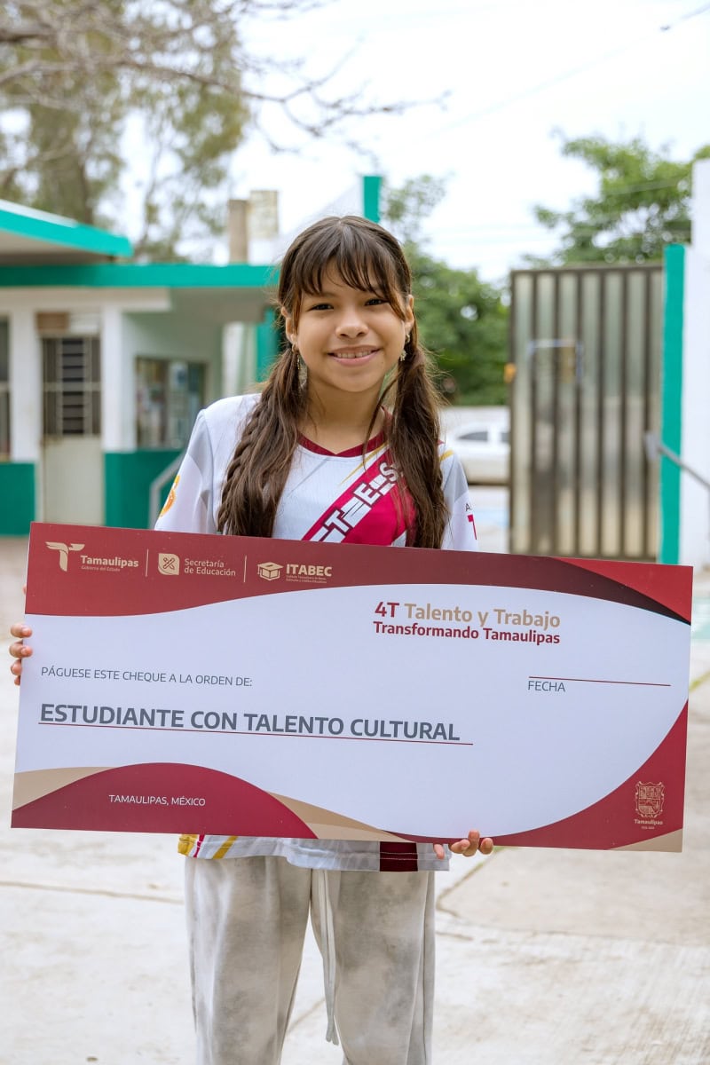En representación del gobernador de Tamaulipas, Américo Villarreal Anaya, la titular de la Secretaría de Educación en el estado, Lucía Aimé Castillo Pastor, hizo entrega, por primera vez, de los cheques del programa «4T Talento y Trabajo Transformando Tamaulipas» a estudiantes con talento académico, deportivo, cultural, cívico o emprendedor que hayan obtenido un reconocimiento dentro de los tres primeros lugares a nivel estatal, regional, nacional o internacional.