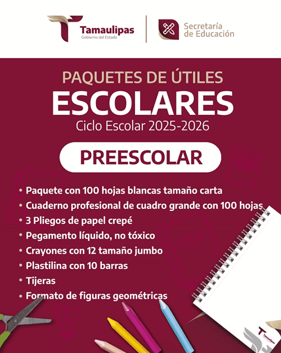 Te presentamos la lista de los útiles escolares que el Gobierno del Estado de Tamaulipas entregará a las niñas, niños y adolescentes de escuelas públicas para el ciclo escolar 2025-2026.