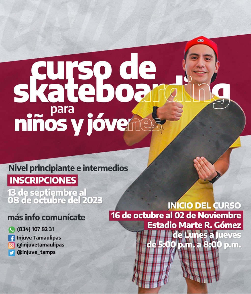 Ciudad Victoria, Tamaulipas.- El Injuve Tamaulipas anuncia la realización de un curso gratuito relacionado a la práctica del skateboarding dirigido a niños y jóvenes de nivel principiantes e intermedios.