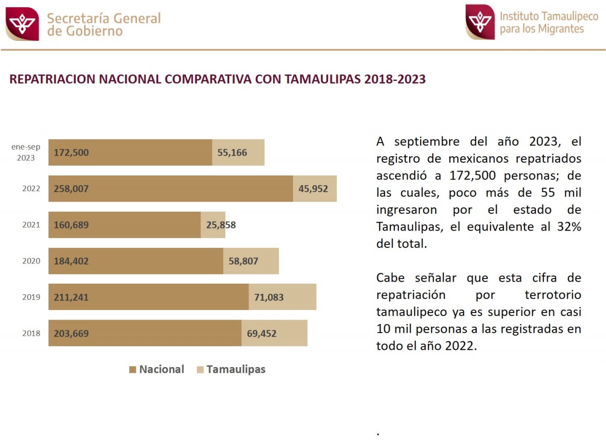 Repatriación nacional comparativa con Tamaulipas (estadística 2018-2023).