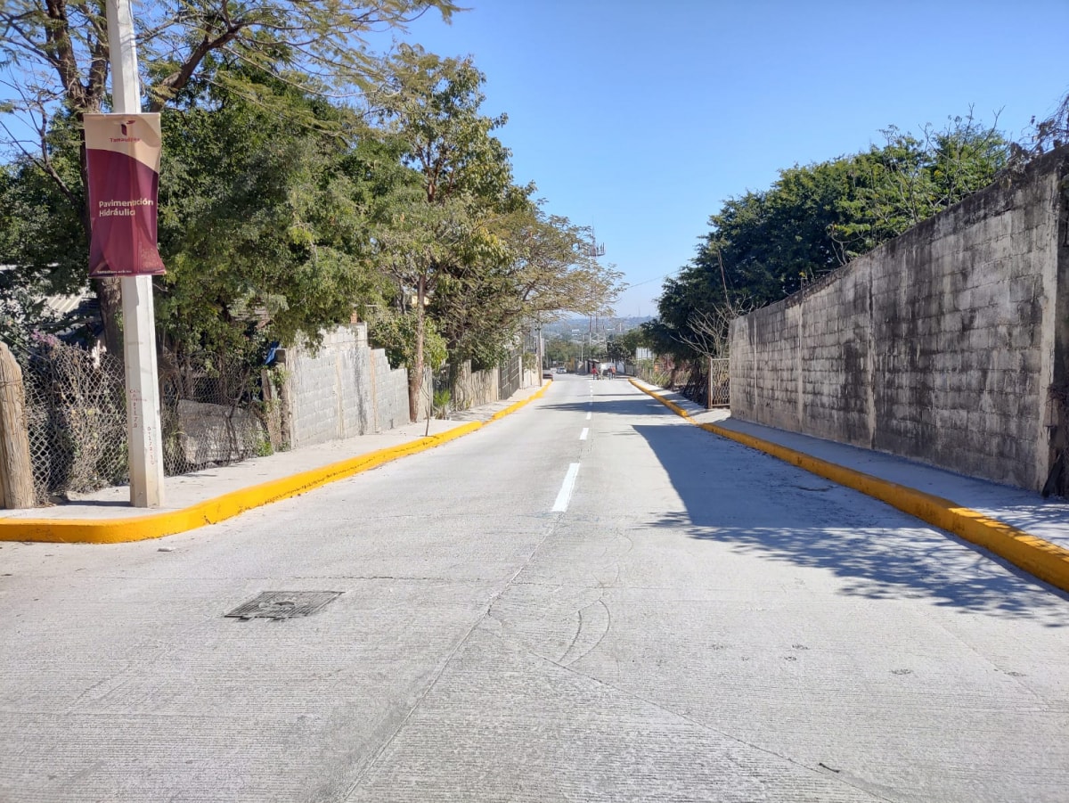 En la vialidad transversal a la carretera a Matamoros, colindante con el Polideportivo Américo Villarreal, se efectúo pavimentación con concreto asfáltico.