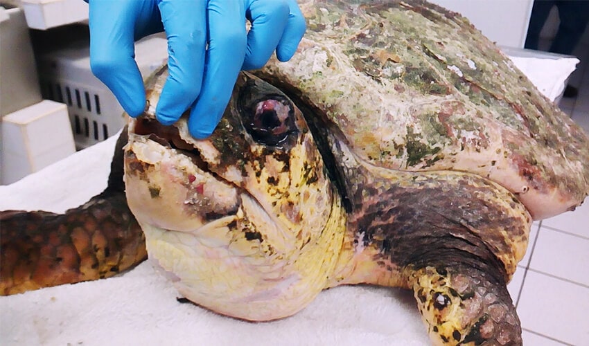 Esta especie fue localizada varada en la playa barra del tordo municipio de Aldama por personal de la Comisión Nacional de Áreas Naturales Protegidas (CONANP) y trasladada al Zoológico Tamatán el día 1 de Abril del presente año, la cual se observaba en estado crítico, aletargada, emaciada, con múltiples laceraciones en cuello y ojo derecho, así como dificultad para respirar, también presentaba una gran cantidad de balanos y percebes (infecciones en piel y caparazón).