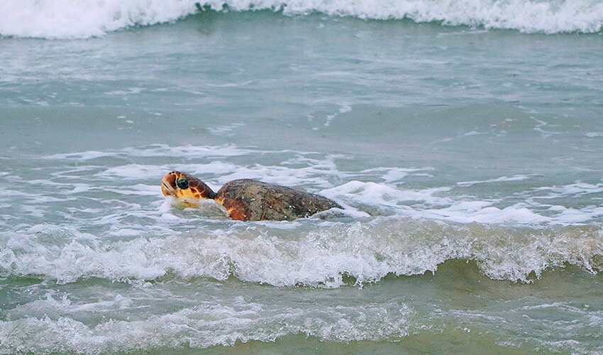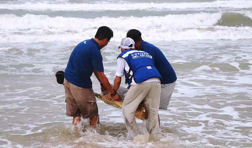 La Pesca, Soto La Marina.- El 5 de junio, Día Mundial del Medio Ambiente , el Gobierno del Estado de Tamaulipas a través de la secretaría de Desarrollo Urbano y Medio Ambiente y su titular Gilberto Estrella, reintrodujo al mar una Tortuga Caguama (Caretta caretta), acompañado por el Vocal Ejecutivo de la Comisión de Parques y Biodiversidad de Tamaulipas, Alejandro Garza Peña y personal técnico del Centro de Conservación de Tortugas Marinas.