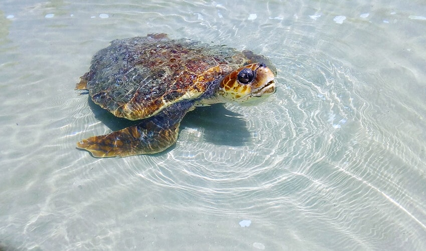 La Tortuga Caguama nada en las aguas de nuestro estado y es una de las seis especies de tortugas marinas que se encuentran en el territorio mexicano y una de las siete especies que nadan en los océanos del mundo, y como todas ellas, es una especie en peligro de extinción.