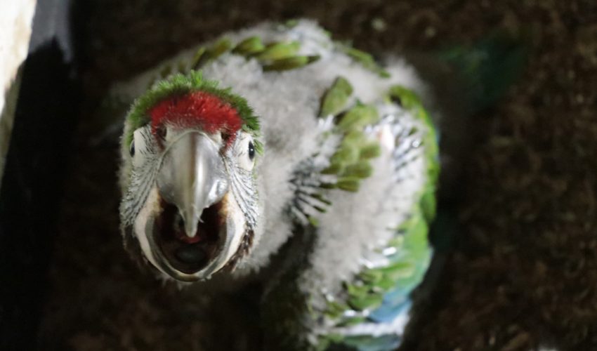 Nace en Tamaulipas primer polluelo de Guacamaya Verde