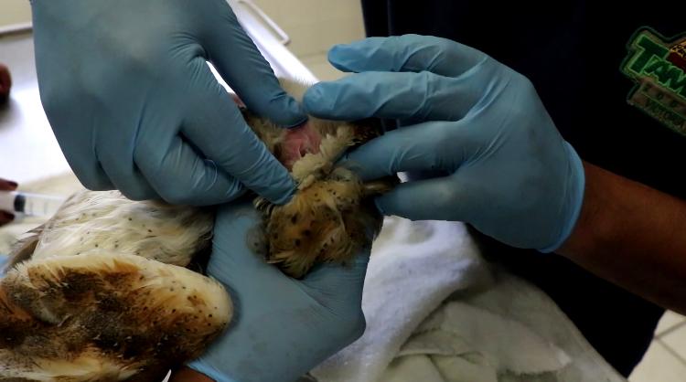 Las aves fueron divididas en 2 grupos, el primer grupo se encontró en un edificio y fue llevado al Zoológico Tamatán por personal de PROFEPA el día 12 de Septiembre del 2019, estas fueron identificadas como crías de aproximadamente un mes de nacidas, por lo que se implementó una crianza artificial, hasta que completaron su desarrollo.
