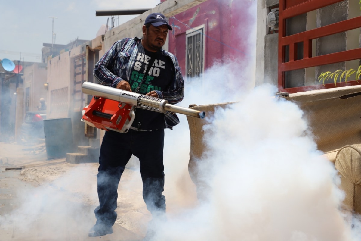 Gloria Molina Gamboa, secretaria de Salud anunció el despliegue del grupo estatal de fumigación en municipios afectados y zonas de riesgo, equipado con vehículos, maquinaria pesada, abate e insecticidas, motomochilas, aspersores y termonebulizadoras para eliminar criaderos del mosquito transmisor del dengue, zika y chikungunya.