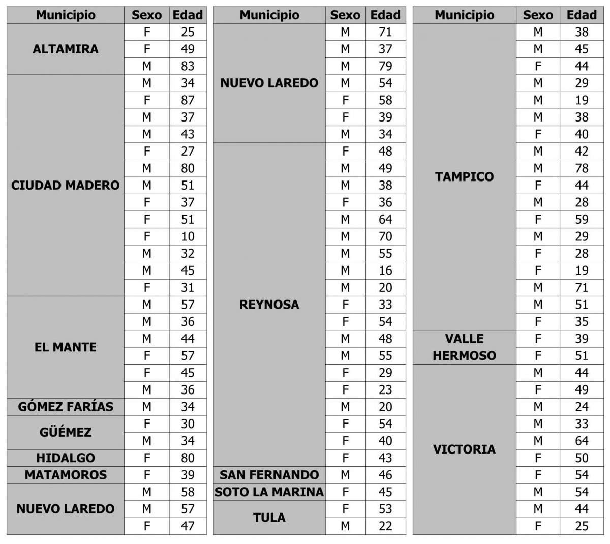 Con la actualización, la cifra oficial en Tamaulipas asciende a 19,046 confirmados, de los cuales 13,497 se han recuperado y 1,232 han fallecido.