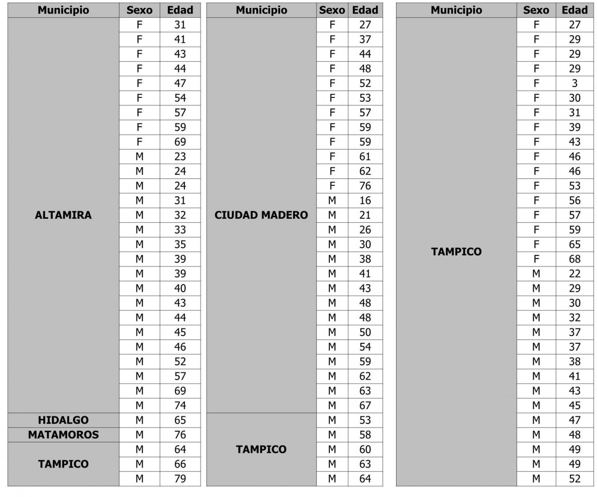 CIUDAD VICTORIA, Tamaulipas.- En un segundo reporte de casos de la jornada del miércoles 5 de agosto, la secretaria de Salud, Gloria Molina Gamboa confirmó 96 casos del nuevo coronavirus.
