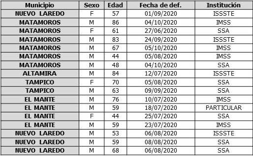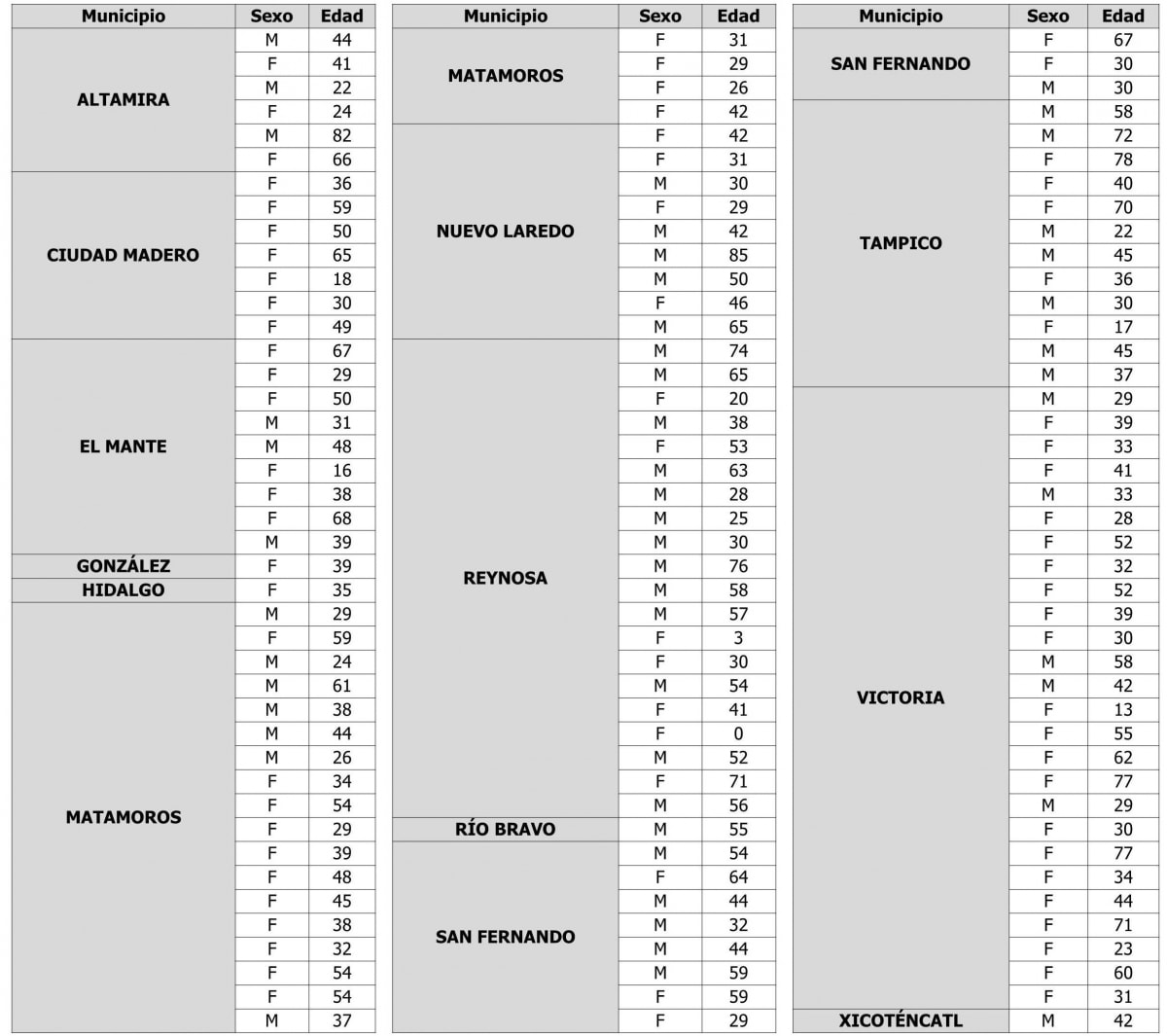 Con ellas, el último balance indica que Tamaulipas llegó a los 29,975 positivos acumulados, de los cuales 26,043 se han recuperado y 2,482 han fallecido.